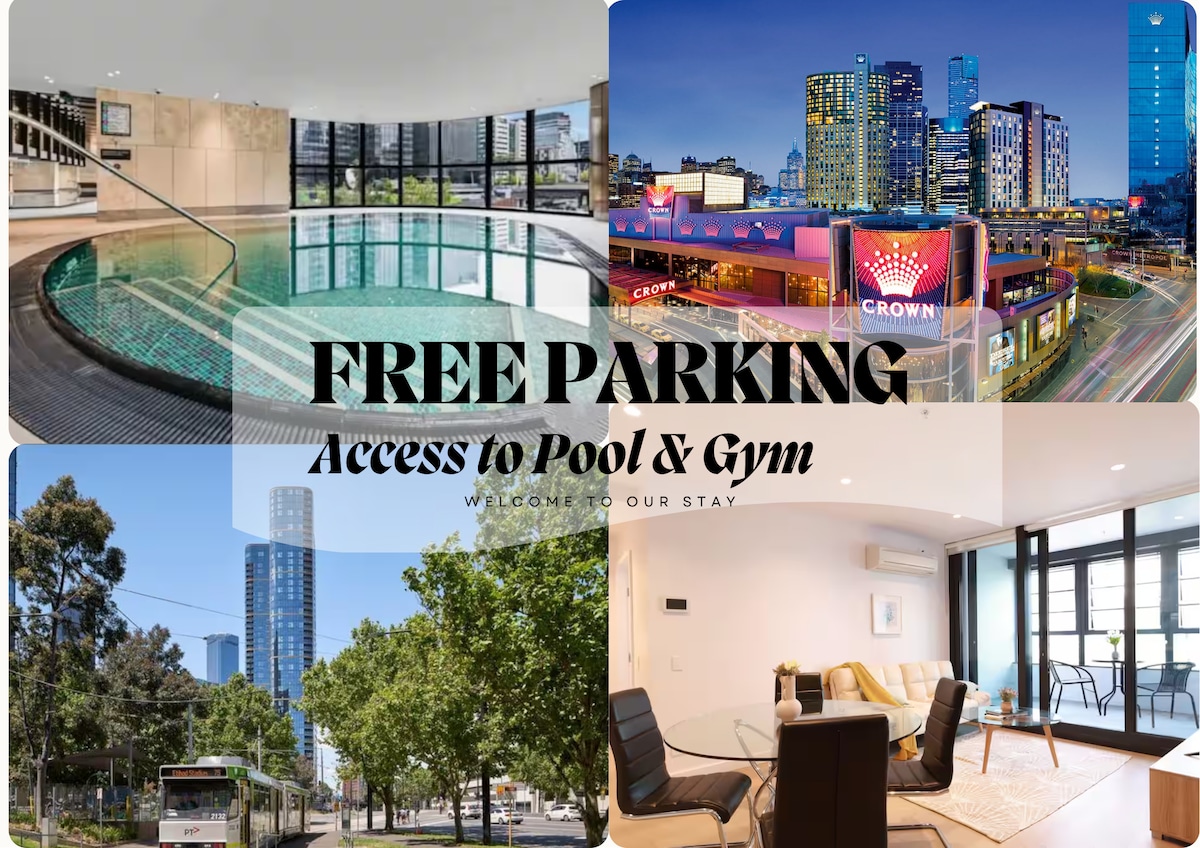 Our apartment is about 100 sq.m. has 2.5 bedrooms, 2 bathrooms. The master bedroom has a study, we have a queen bed in the master bedroom, a single bed in the study. The other bedroom has a queen bed. In addition, we have a bay window bed in the living room. Our apartment is located in Melbourne's free tram zone. The Southern Cross train station is a few minutes walk away. There is also a shuttle bus to the airport. One free parking space available. Vehicles cannot exceed 2m.