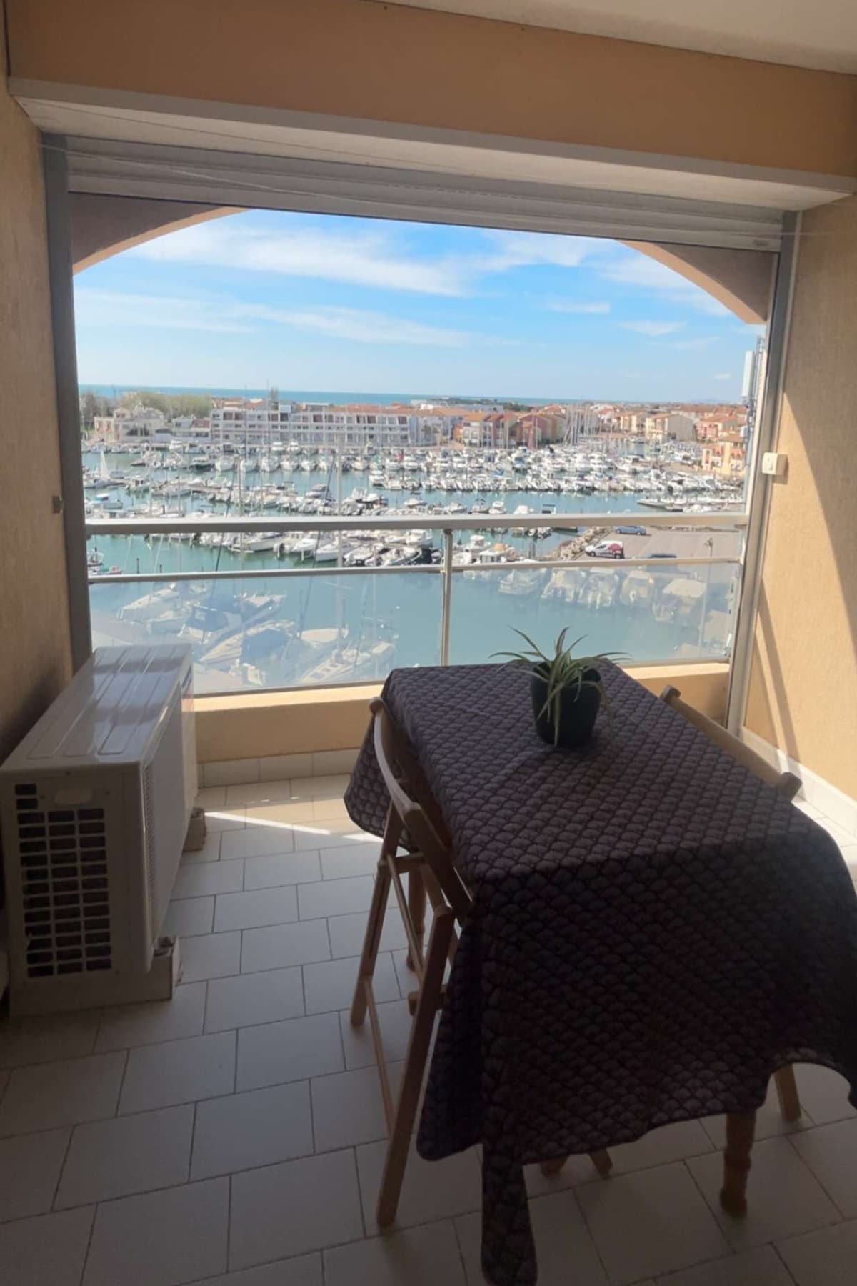 Two-bedroom apartment with large veranda, bright, magnificent view of the port, 5 min walk to the beach. All amenities nearby, restaurants, shops, market. Double bed and sofa bed with quality bedding. Equipped kitchen. Walk-in shower. Separate toilet. Storage room in addition. Free private parking (Paid parking in Carnon) Bike garage. Provided: - Cotton sheets (beds made before your arrival) - Bath towels - Beach towels and umbrella - Hairdryer