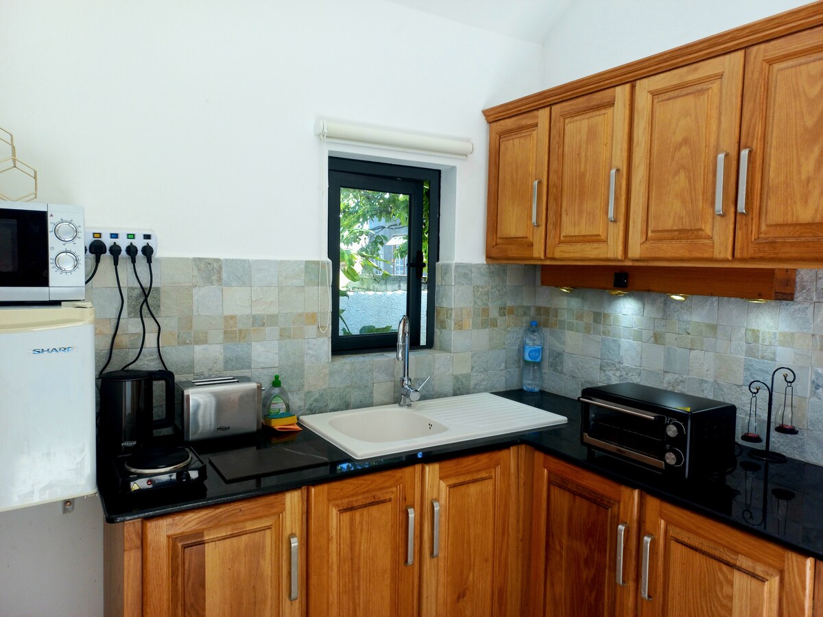 Your stay in a practical and functional accommodation for an unforgettable vacation: new accommodation consisting of a comfortable bedroom with shower room and toilet, a modern, furnished and well-equipped kitchen, living room and dining table, access to the beach by crossing the garden by a small path along the main house, a beautiful quiet and uncrowded bay, these are the ingredients for a beautiful beach vacation in the South of Mauritius.