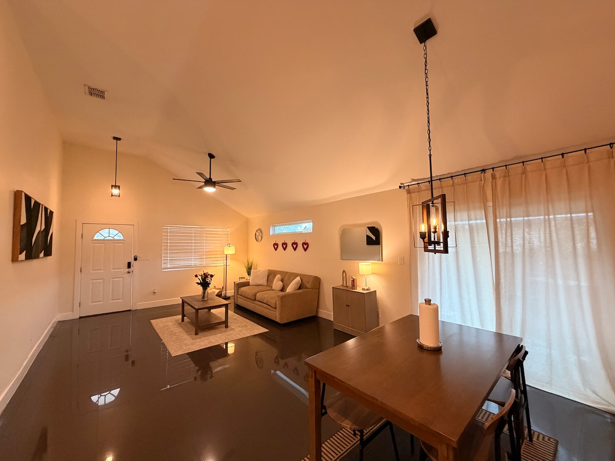 Feel at home in this clean and luxurious property with high-quality furniture, sheets, pillows, and mattresses. The kitchen comes fully loaded with cookware, dining ware, utensils, and anything else you may need to cook except the ingredients! You can also enjoy the state-of-the-art whole-house water filtration system. You will instantly notice the difference the second you step in the shower. The property is about 10 minutes away from the main shopping centers and the airport. Enjoy your stay!