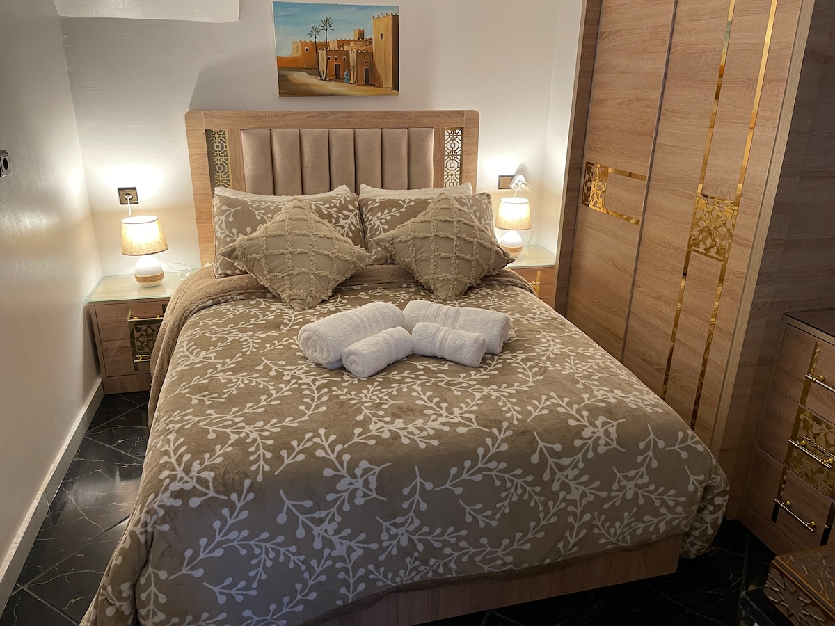 ✨️LE GLORIOUS✨️ Détendez-vous dans ce logement calme et élégant. Joli appartement à deux pas du GRAND STADE de Tanger Agréable et apaisant, l’appartement se compose d’un salon élégant ensoleillé avec une chambre (lit neuf 180) La salle de bain est propre et fonctionnelle Parfaitement équipé, calme et imprégné d'une ambiance cocooning, ce sera le point de chute idéal des voyageurs d’affaires et d’agrément