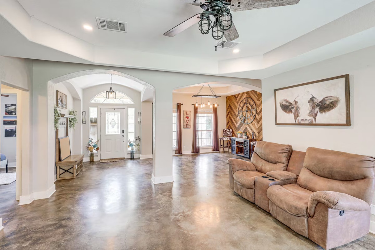 Forget your worries in a peaceful country setting. Relax on the front porch with rockers and a chiminea, A patio with BBQ grill, great for enjoying nature and night stargazing. One bedroom, bath & half, barndominium with a full kitchen. 15 minutes to Baylor, Downtown Waco, and Magnolia Silos and tons of other quaint shops and eateries. Please no pets!