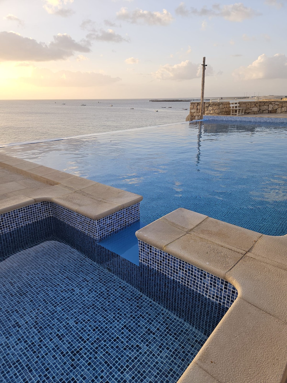 Charming Villa, in the STELLA MARIS EXCLUSIVE Village, in a corner of paradise in Cape Verde. The prime location overlooking the ocean will give you breathtaking views. In addition to the infinity pool overlooking the ocean, you have direct access to a small cove of fine sand. The garden and terrace are ideal for enjoying the sea breeze, spectacular sunsets, and outdoor dining. Both the most popular beaches and the small town of Porto Ingles can be reached on foot.