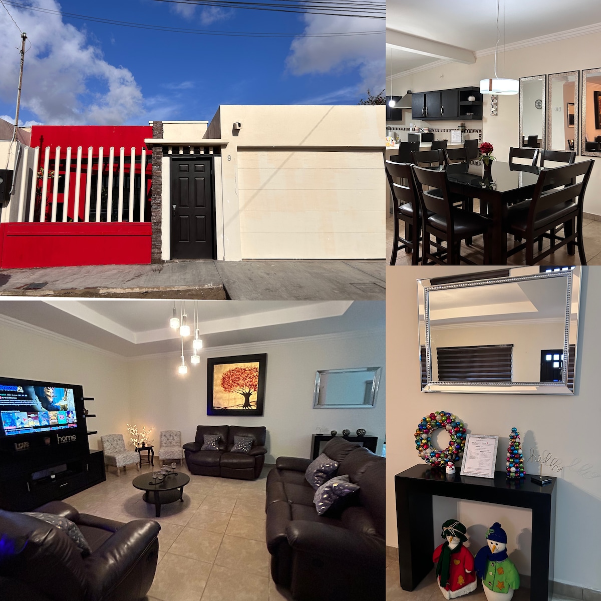 Your family will be close to everything if you stay in this centrally located place, several markets that are a must, OXXO, and popular food establishments of the "Tacos el muelle" community. It has two spacious rooms, one with a king size bed and the other with a queen size bed, with a sofa bed, two full bathrooms, it has a completely private patio with barbecue, independent access, it has a garage for two cars and private parking. Equipped kitchen.