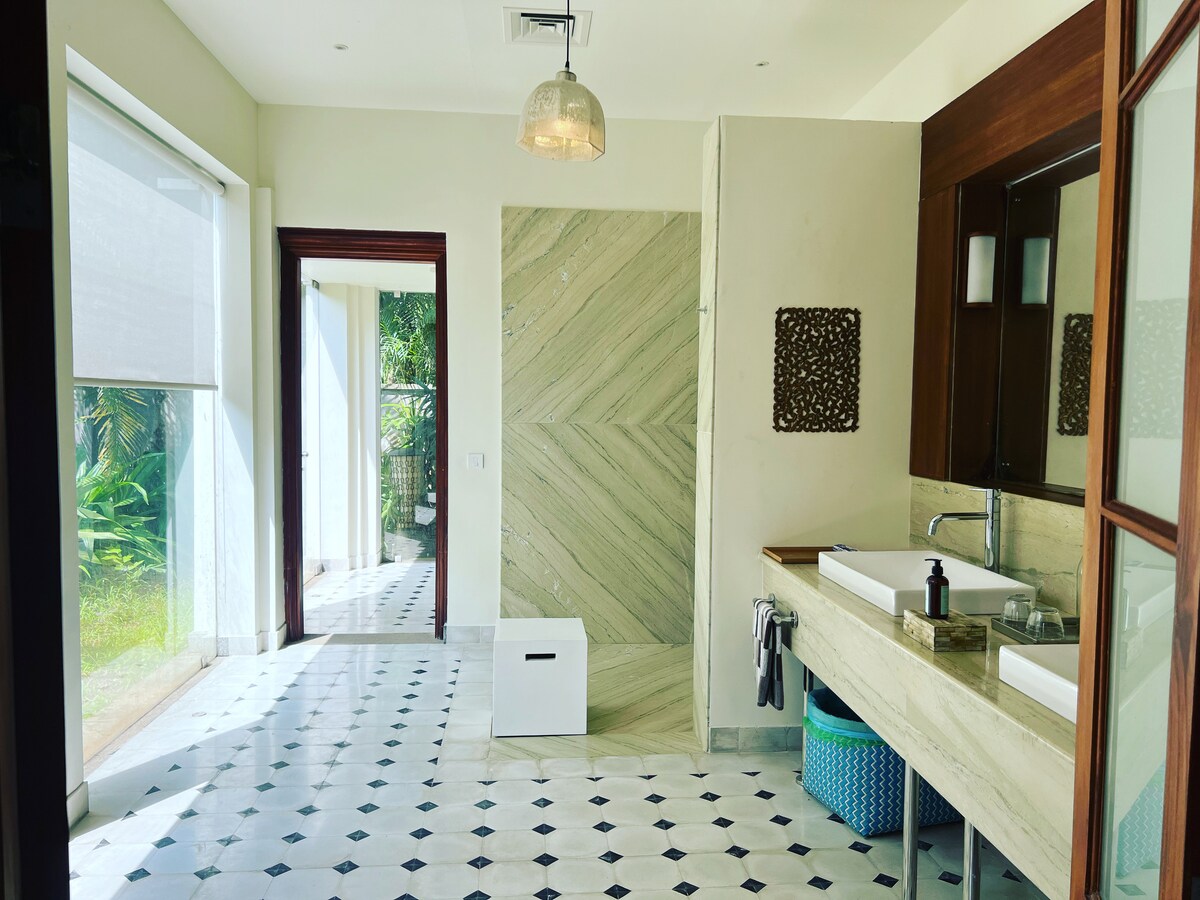This residence features three bedrooms, each with its own attached bathroom. Additionally, there is a separate office space. All three bedrooms are furnished with king-size beds. The house includes spacious halls, a drawing room, a recreation room, and a dining area. At the front of the house, there is a verandah and a car porch. The kitchen is notably spacious and well-equipped. We utilize solar power as a sustainable energy source. high-speed wifi and 24/7 power supply available