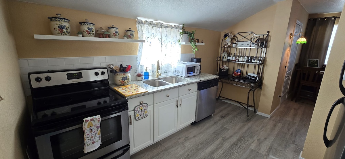 A & M Suite is located in the quiet historic community of Warren, in Bisbee, AZ. It has plenty of parking space and a private entry. The 500 sq. ft. suite has a fully equipped kitchen and supplied with coffee, teas, hot chocolate and basic spices. Just bring your own food and beverages. The suite has a full bath and a washer and dryer. It has cable TV and WiFi. Guest of all backgrounds are welcome! No cleaning fees!