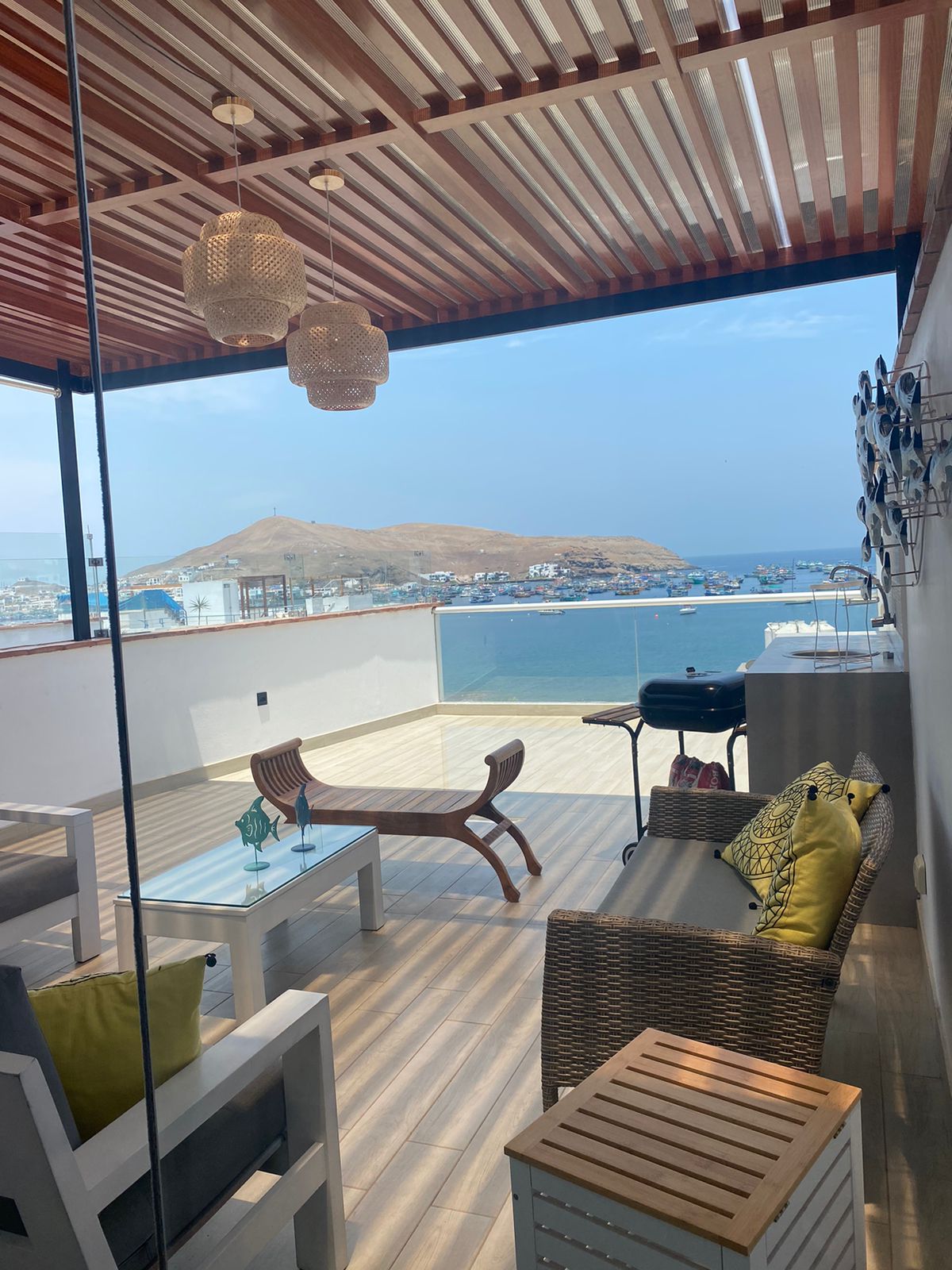 A special place where you can work or relax looking at the peaceful sea of Pucusana Bay while hearing seabirds and fishing boats. A safe and quiet place, without cars and surrounded by nature. We are part of an association available for any questions. Shopping and restaurants with delivery services. Ideal for disconnecting with family, partner or friends, as well as seeing marine fauna, doing water sports, diving, working in peace and enjoying Peruvian cuisine.