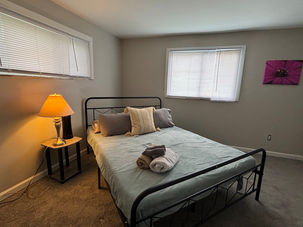 Enjoy this large newly built space in the heart of Granville Village and an easy walk to Denison University and downtown Granville. There is a private entrance with combination lock to come and go as you please. Private bedroom with king sized bed; second double bed with memory foam mattress in separate area. Off-street parking for your car offers easy access to entry, street parking for extra vehicle. Private patio with table and chairs.