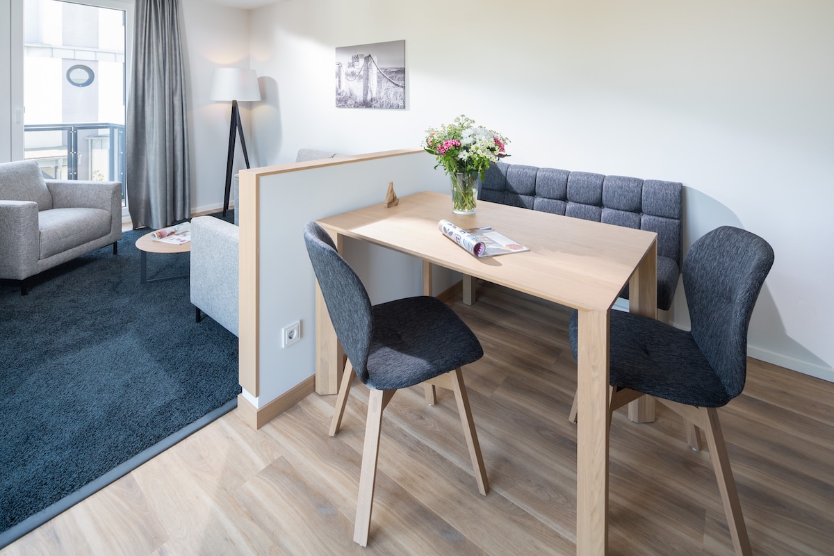 Enjoy your vacation in this newly renovated quiet and centrally located accommodation. • approx. 26 m² of living space • Sleeps up to 2 people • Separate bedroom with 1x double bed (200 cm x 180 cm) • Living room with pantry kitchen and dining area • 1 bathroom: shower and toilet • Kitchenette equipment: Nespresso coffee machine, microwave, sink, cooking facilities, refrigerator, dishes and cutlery