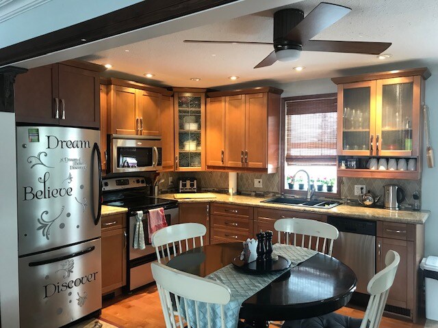 The whole group will enjoy easy access to everything from this centrally located home.Stay in this one of a kind, newly renovated,vintage lake house, “steps” from the lake. Local amenities include swimming, boating, kayaking, restaurants and much more. This spacious home with a huge green space including a wood burning fire pit, games area and barbecue. Our home has everything for your next beach vacation. Special occasions can be accommodated upon request. Welcome basket upon arrival.