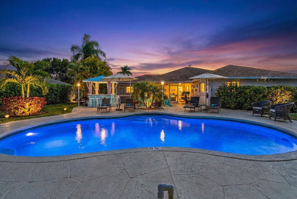 Welcome to Naples Amore – Modern Luxury Retreat Near the Beach | Sleeps 16 Experience upscale coastal living at Naples Amore, a stunning 5-bedroom, 3.5-bath luxury retreat nestled in the heart of Naples, Florida. Located just minutes from white-sand beaches, this designer home sleeps 16+ and is packed with resort-style amenities—including a private pool with hot tub and waterfall, a $20K custom pizza oven, kids’ playground, and so much more.