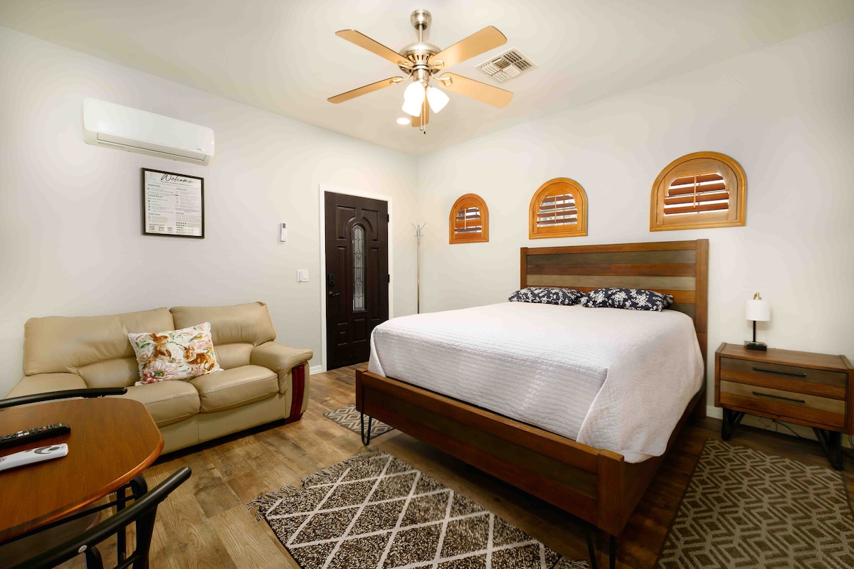 Modern, Comfortable & Spacious 200 sq. ft. Private Casita/Guest Suite in North Phoenix. 4 miles to Desert Ridge Shopping & Reach 11, 9 mile to Westworld Scottsdale & TPC Scottsdale Golf Course, 5 miles to Mayo Clinic, 15 miles to State Farm Stadium. Quick access to 101 & 51 Freeways. Spacious shower & comfortable queen bed. Small refrigerator, microwave & coffee maker. Natural lighting through plantation shutters on 2 walls. Workspace & smart TV w/ ability to log into popular streaming apps.