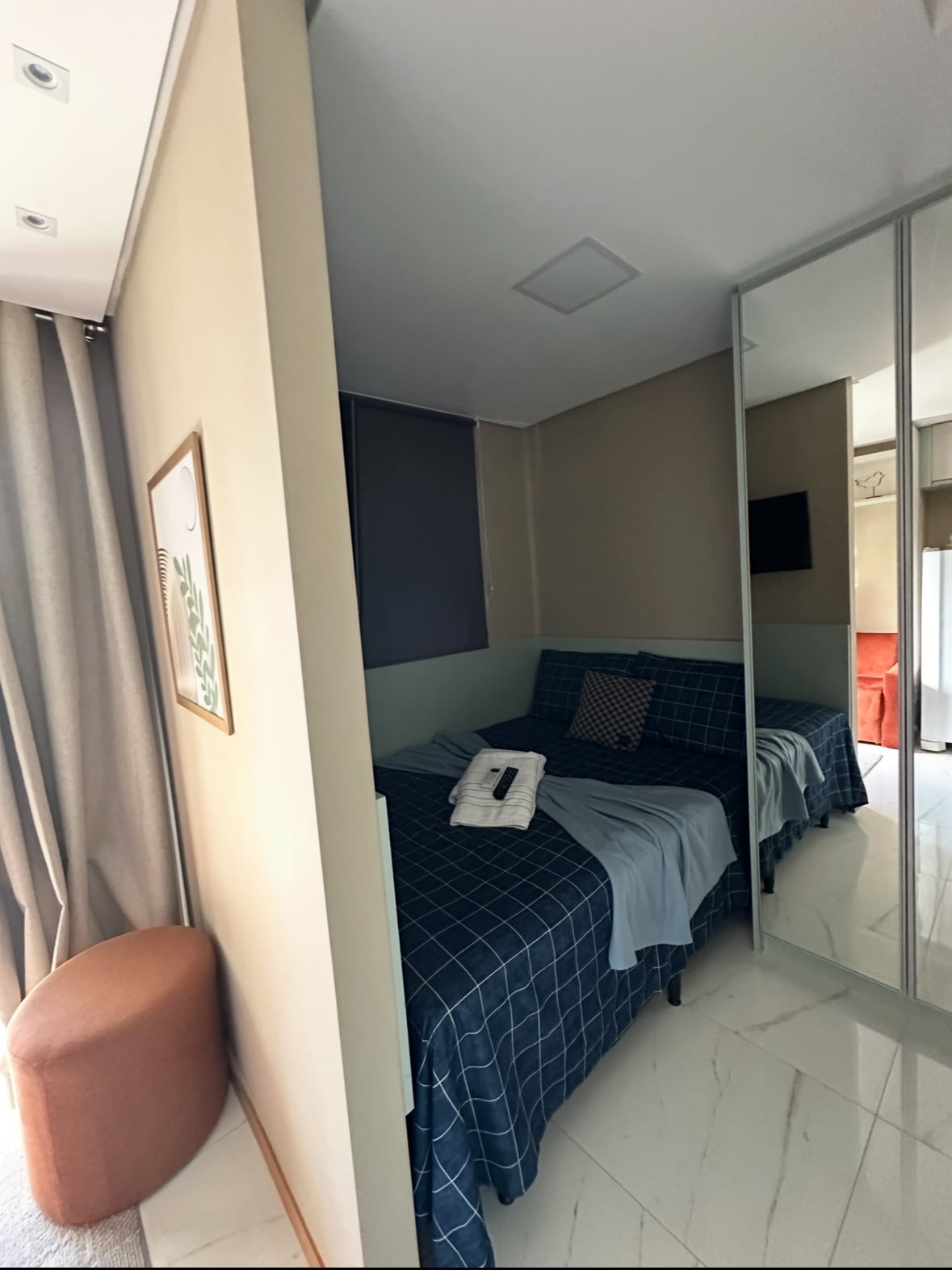 Enjoy a wonderful experience in this flat at the vision hotel, super modern and cozy. Located in the center of Brasília, close to the city's main tourist attractions and shopping malls. Our flat offers, in addition to every comfort, a smart TV with Netflix, Wi-Fi (350 megabytes), 1 extra mattress (upon request at the time of booking), an iron, a kitchen with various utensils and appliances, a parking space, and an entire leisure area with a swimming pool, sauna, restaurant, and fitness center.