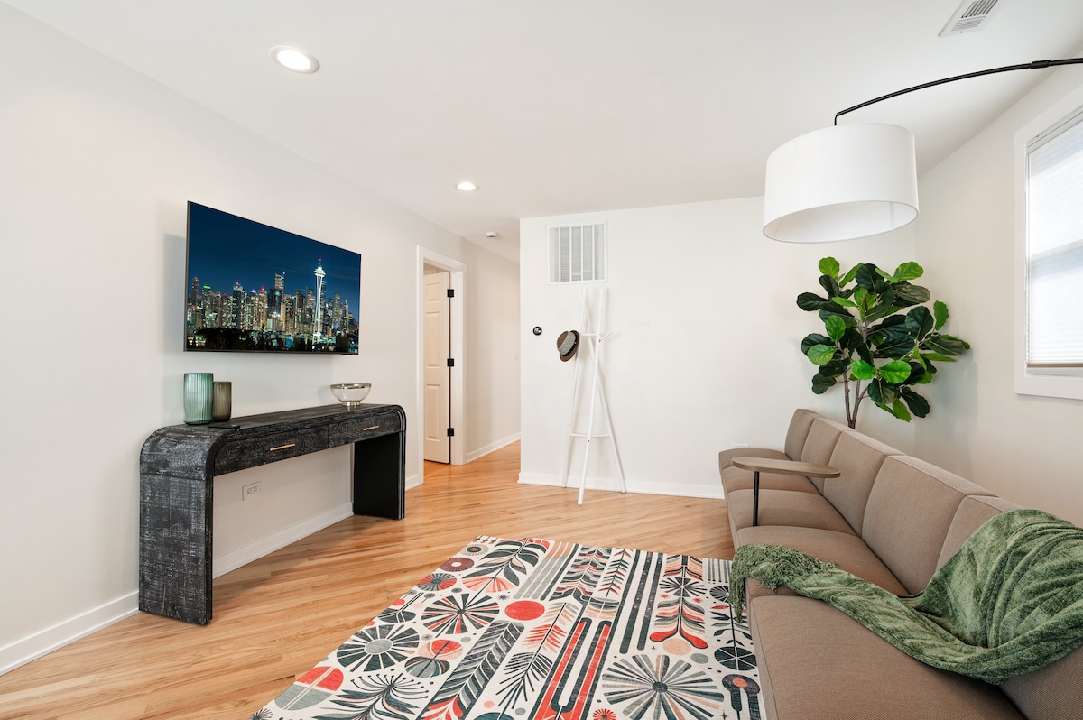 Experience Chicago in this North side 1-bedroom apartment, ideally situated near top-notch dining and entertainment. The L Train (Blue Line) is a short walk away, granting easy access to the city's attractions. This apartment provides all the essentials for your trip to Chicago. It features 1 King-sized bed and a charming living area with expansive windows. Experience the wonders of Chicago in this delightful home!