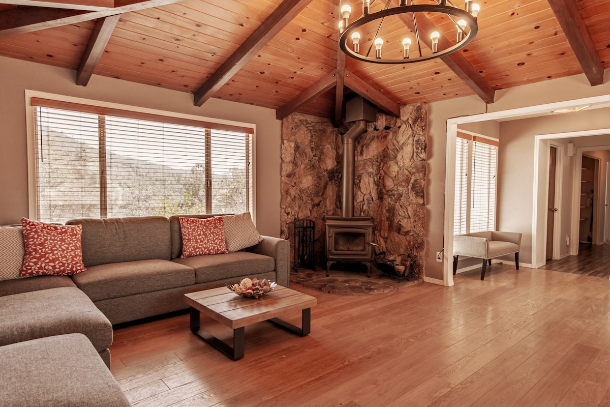 Your family will be close to everything!! Stunning centrally-located downtown Oakhurst home w/ complete kitchen (Breakfast + Starbucks coffee Included) living room +fireplace, workspace, large patio, laundry room & 2 bedrooms - Outdoor Picnic area w BBQ+ horseshoes +cornhole +mountain bikes - Walk or Bike to STARBUCKS, restaurants, breweries, distillery & more. 12min to Bass Lake -21min to YOSEMITE -13min to Chukchansi Casino -10min to Coarsegold -17min 2 Sugar Pine & more www•DropMyPin•com