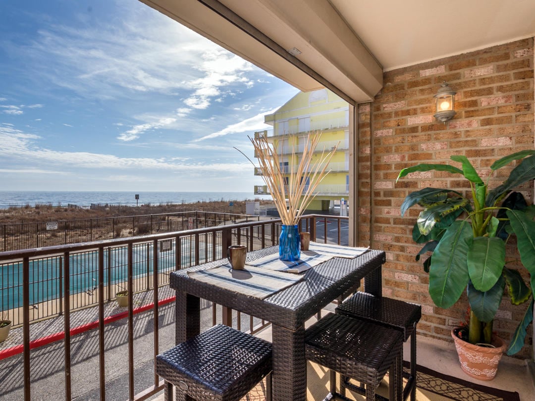 Our summer 2025 is booked but we have availability in the Fall, which is a great time to visit OC! You will appreciate the relaxing ocean views! This updated 2 bd/2 ba oceanfront condo feels like you are sitting on top of the beach. The condo hosts plenty of space for enjoying the expansive, direct ocean and beach views. Cook gourmet meals in the well appointed kitchen with granite counter tops. Enjoy the den as either a third bedroom or as a private oasis.