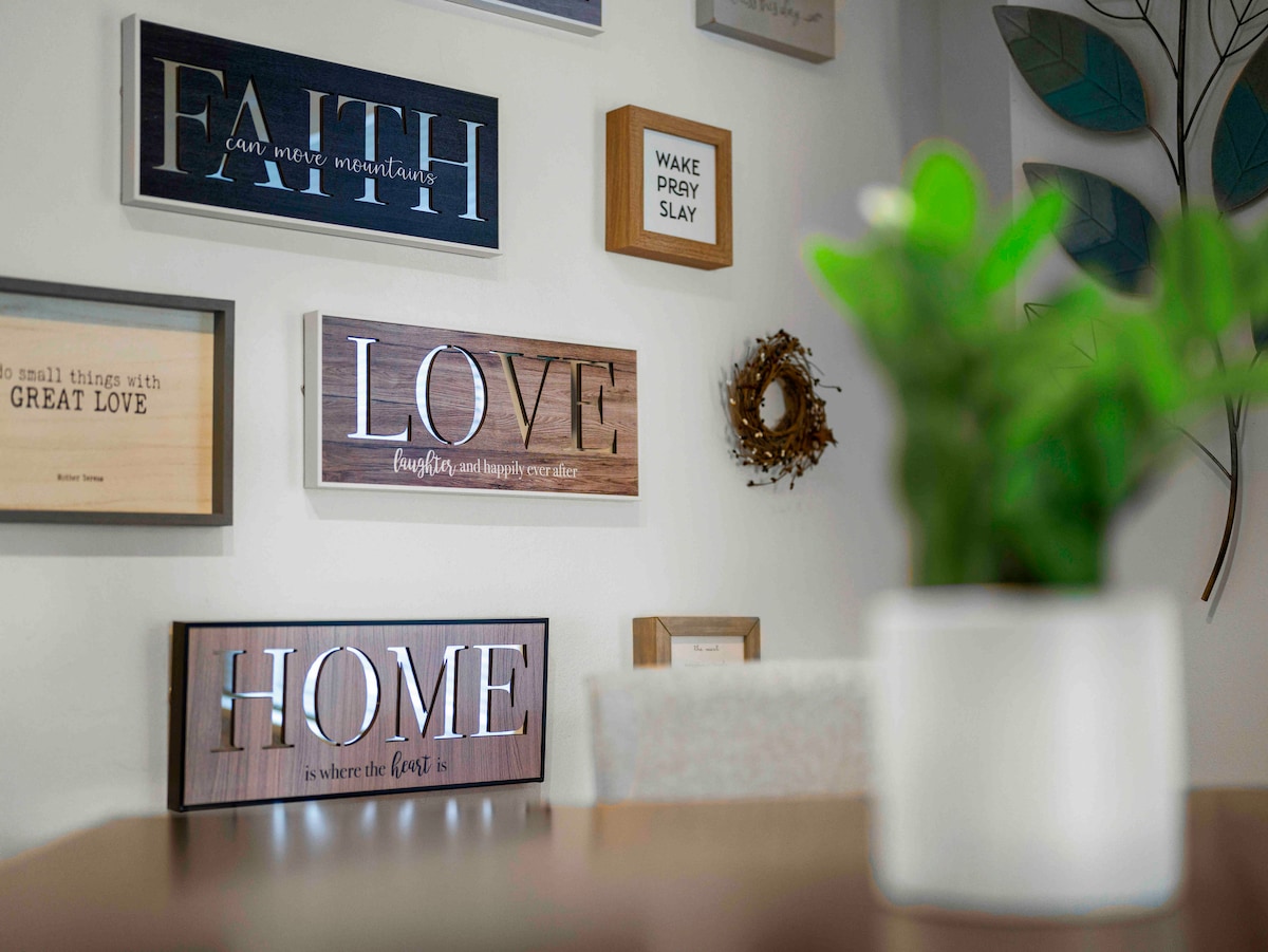 Enjoy serenity and tranquility at our modern home tucked away in a private setting just 5 short minutes from Downtown St Louis. Complementary bottled water, continental breakfast(packaged muffins) and a bottle wine will pamper you the moment you arrive.Unwind in our luxurious multifunction shower+memory foam mattress Test your swing on our scenic driving mat or unwind around the crackling outdoor fire pit. Spa and Special Occassion add-on packages available. Private off street parking.