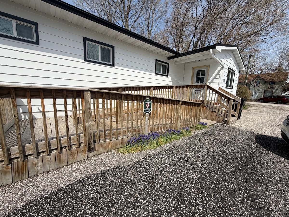 With Portage Lake views off Main St in downtown Onekama, this completely renovated condo is in the center of it all! With a private deck overlooking Portage Lake and creek trickling through the yard, brand new walk-in shower, memory foam mattress, and the shores of Lake Michigan just minutes away (and public beach of Portage Lake just steps away), you could not ask for more with this location!