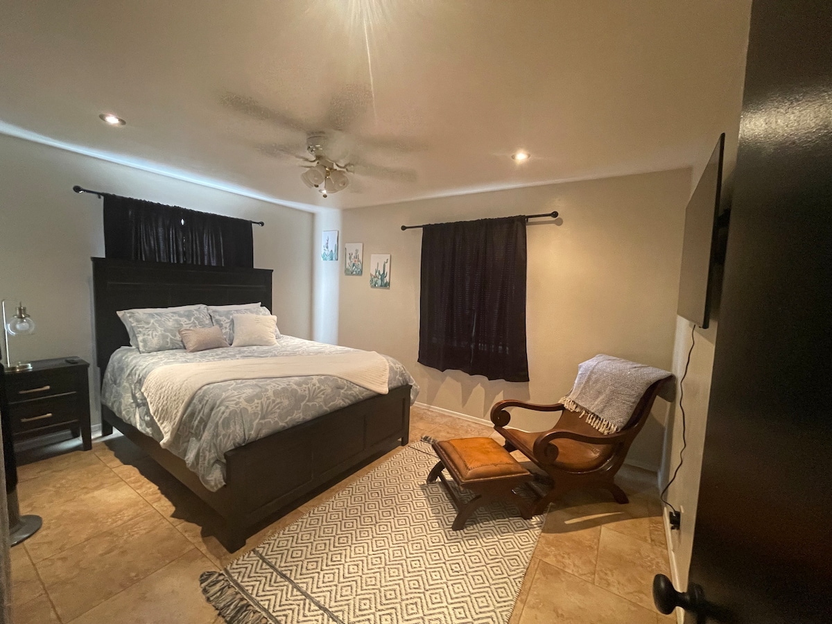 Enjoy our thoughtfully appointed bedroom and bath, peacefully nestled just footsteps from shopping and restaurants at Grant and Swan. Relax on your own private patio with firepit and grill, facing the scenic Catalina Mountains. No-hassle features include private entrance and your own off street parking, an easy stroll to Starbucks, Trocadero Cafe, Tribute Bar & Grill, Trader Joe's and Crossroads Plaza, minutes west of Tucson Medical Center. Upgraded WiFi!