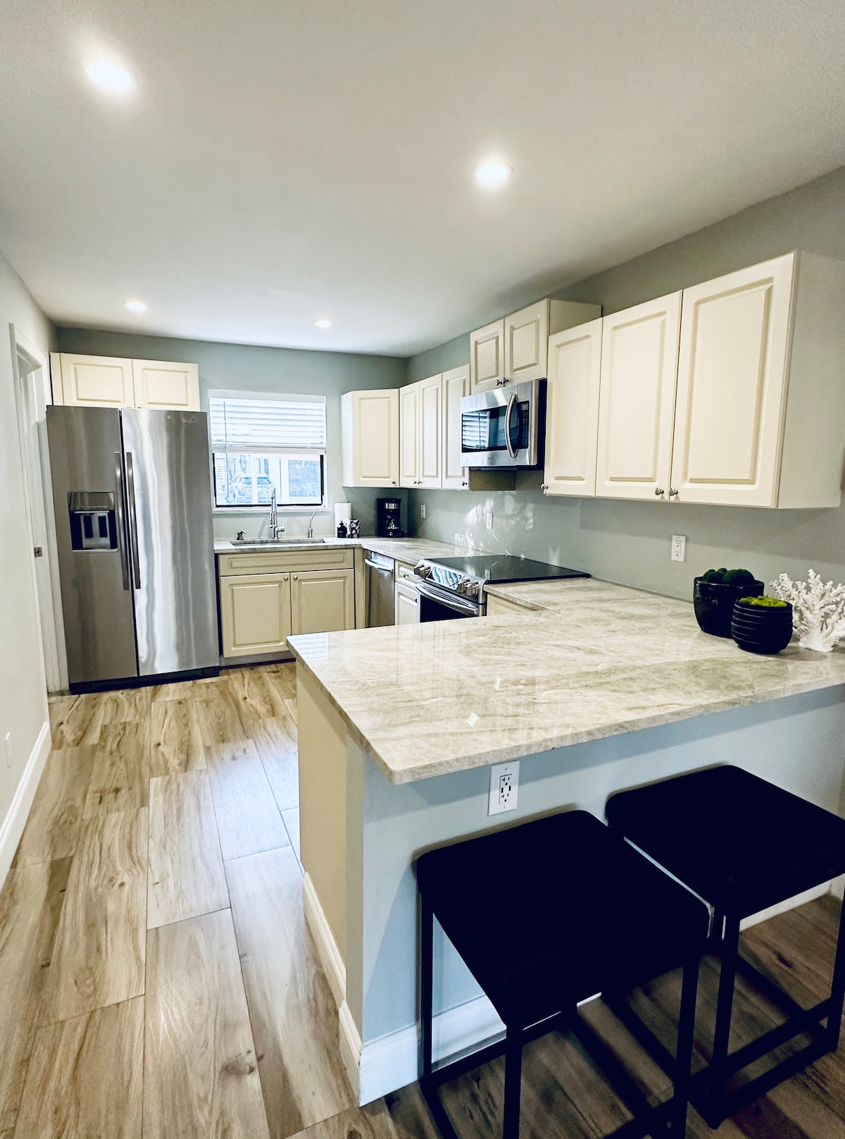 Soak up the warm southwest Florida sun and enjoy a clean modern home with gorgeous views. This newly renovated condo is a short 5 minute car ride to Naples Beaches and 15 minutes to downtown. Two bedroom, two full bath home is the perfect quiet place for a couple’s retreat or for working remotely with high speed internet. The main pool IS open dawn to dusk!!! It’s a two minute walk within the community! (The smaller pool by the condo is closed and still waiting for completion.)