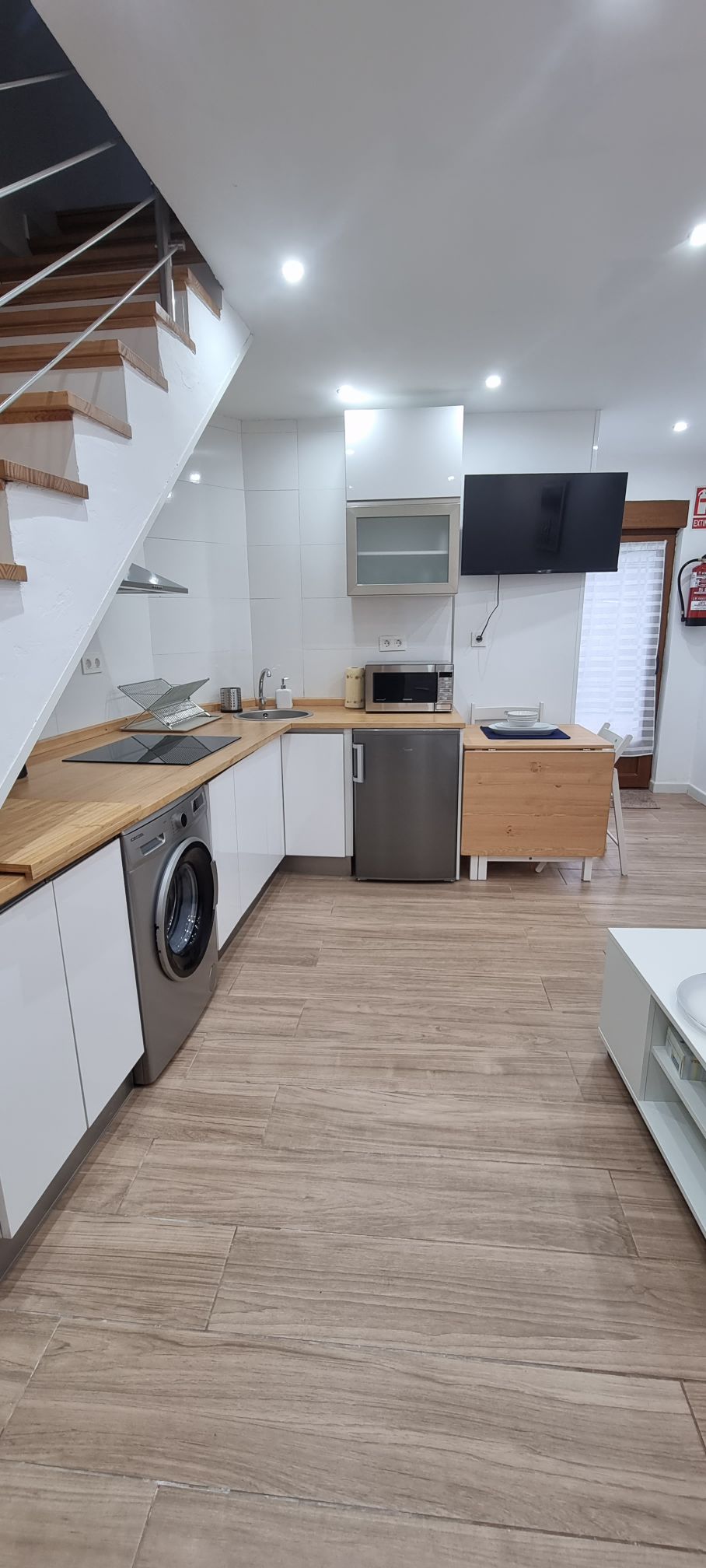 A 75 m2 house distributed over three levels and featuring a separate kitchen, a dining room, a living room with a fireplace, and two bedrooms with an en-suite bathroom. It is an old building that has been completely renovated and equipped with a ceramic stovetop, oven, microwave, washing machine, dishwasher, refrigerator, small appliances, dishes, bed linens, and towels. It has a closed patio with access from the kitchen to relax or eat outside and a balcony overlooking the street.