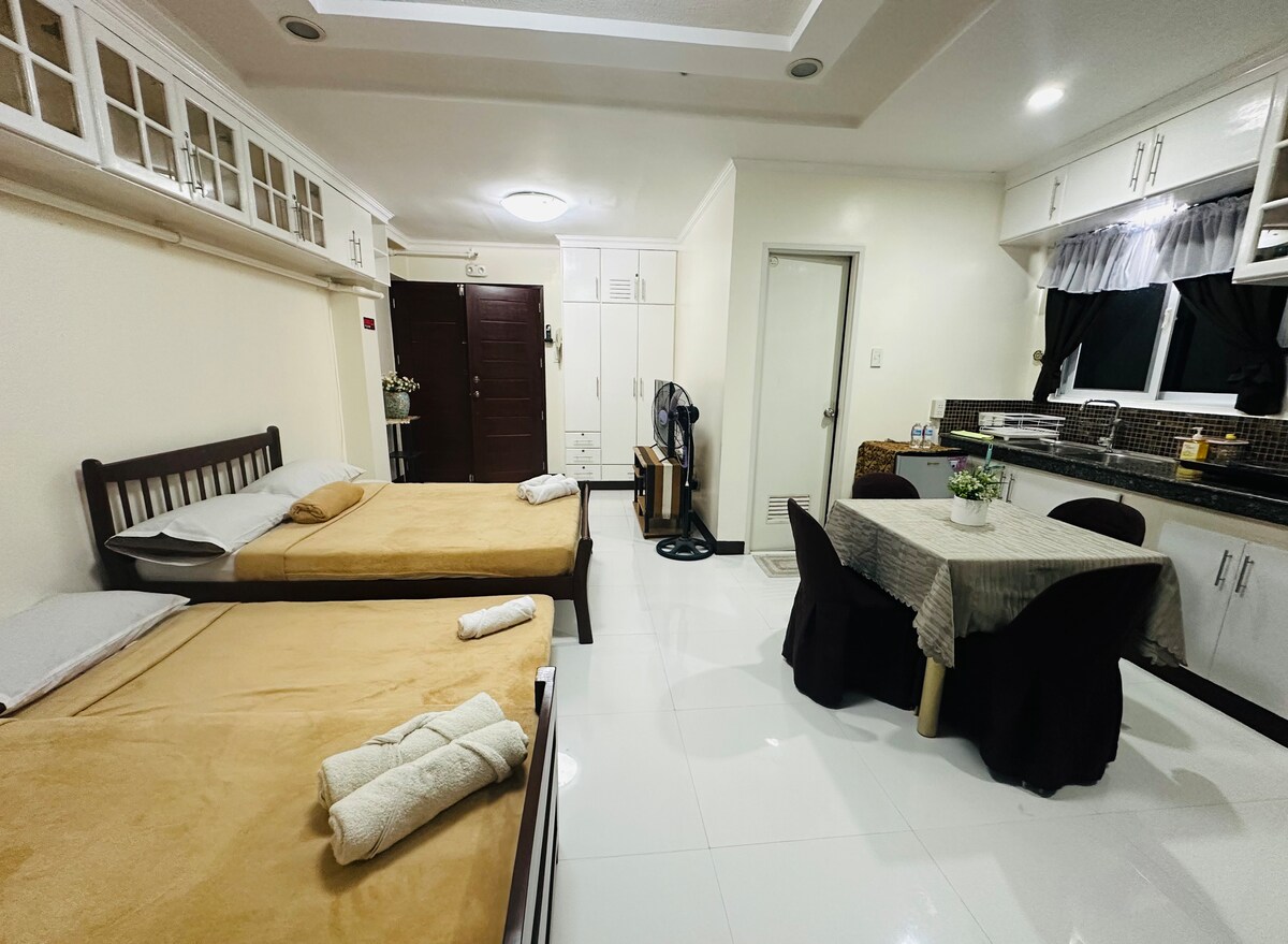 Sienna's flat and transient house is just a year old four storey building that was designed like condo/apartment style with modern architectural design. Each unit has 2-3 bedrooms, living room, kitchen, toilet and terrace. The bedrooms has its own cabinet with sufficient light in each area of the unit. If the guests preffer to cook their own food kitchen stuff are available for use.