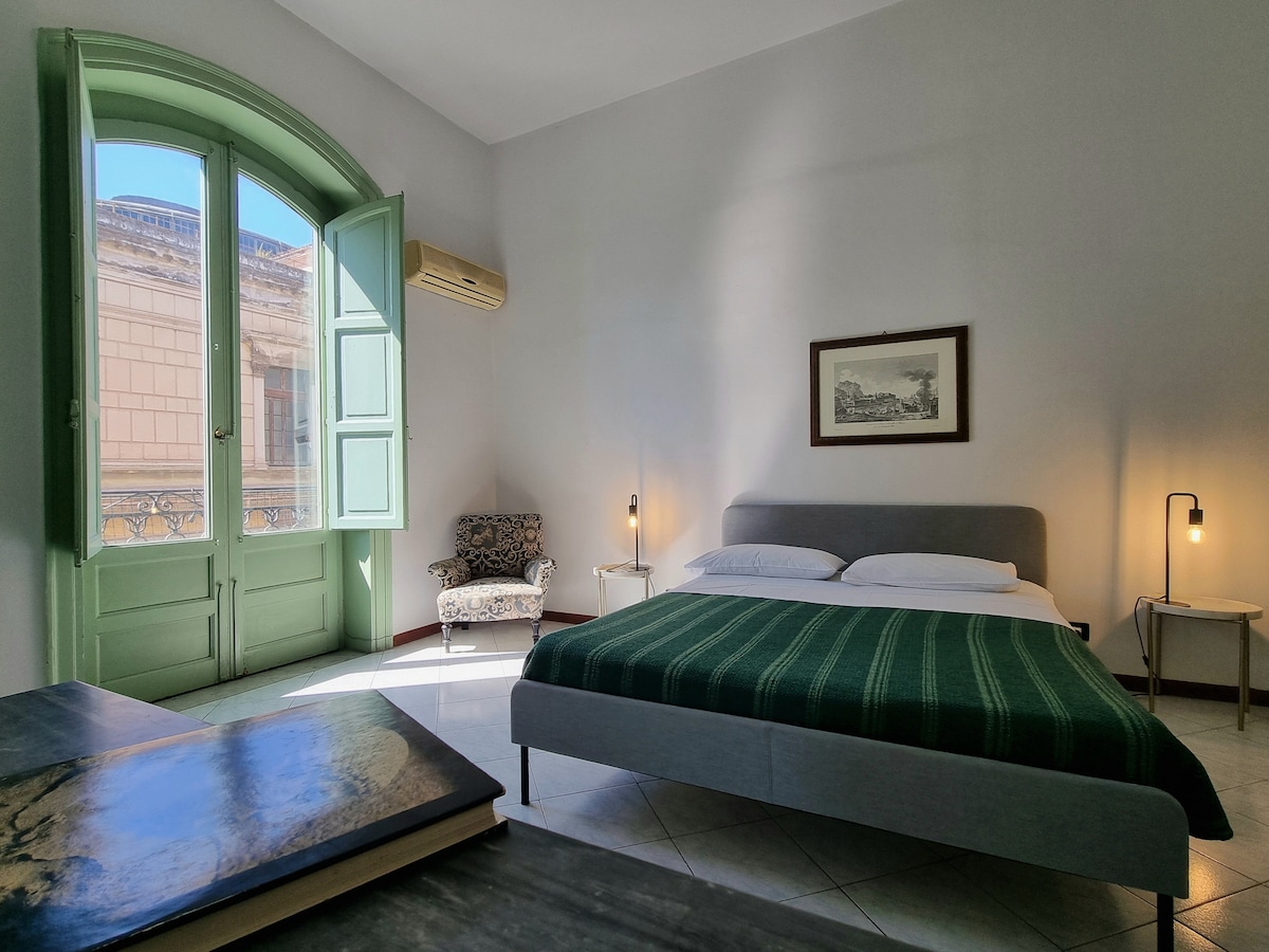 Scendi in strada e la città ti travolge, con i suoi vivaci locali, la musica suonata dal vivo, il profumo del cibo, i colori dei dolci siciliani, ma basta chiudersi la porta alle spalle per ritrovarsi in un silenzio incantato. La camera da letto gode di un incantevole balcone, perfetto per una piacevole colazione, che si apre all'interno di un bellissimo gioiello nascosto: il rigoglioso cortile di un oratorio del '700, la cui cappella è resa tesoro d'arte dagli affreschi di Guglielmo Borremans.