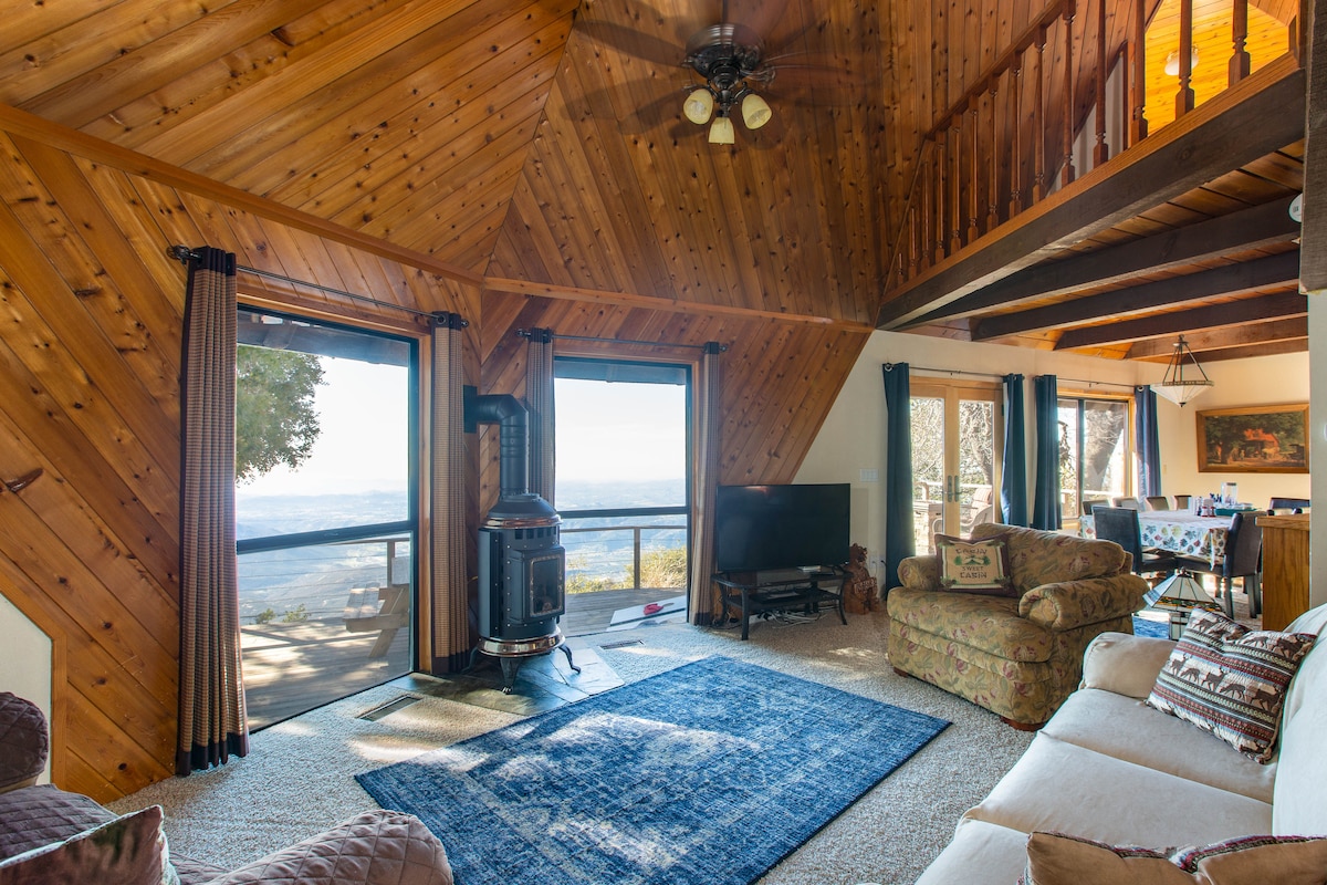Welcome to our “Above the Clouds” cabin, perched at 6,000 feet, the highest residential point in San Diego County. Take in breathtaking views of the surrounding mountains, Anza-Borrego State Park and city lights. Wake up to unforgettable sunrises and surround yourself with nature and tranquility. Lake Cuyamaca is just minutes away, offering hiking, fishing, birdwatching and stunning scenery. Enjoy a delicious lakeside meal, or take a short drive to visit the only Wolf Sanctuary in California.