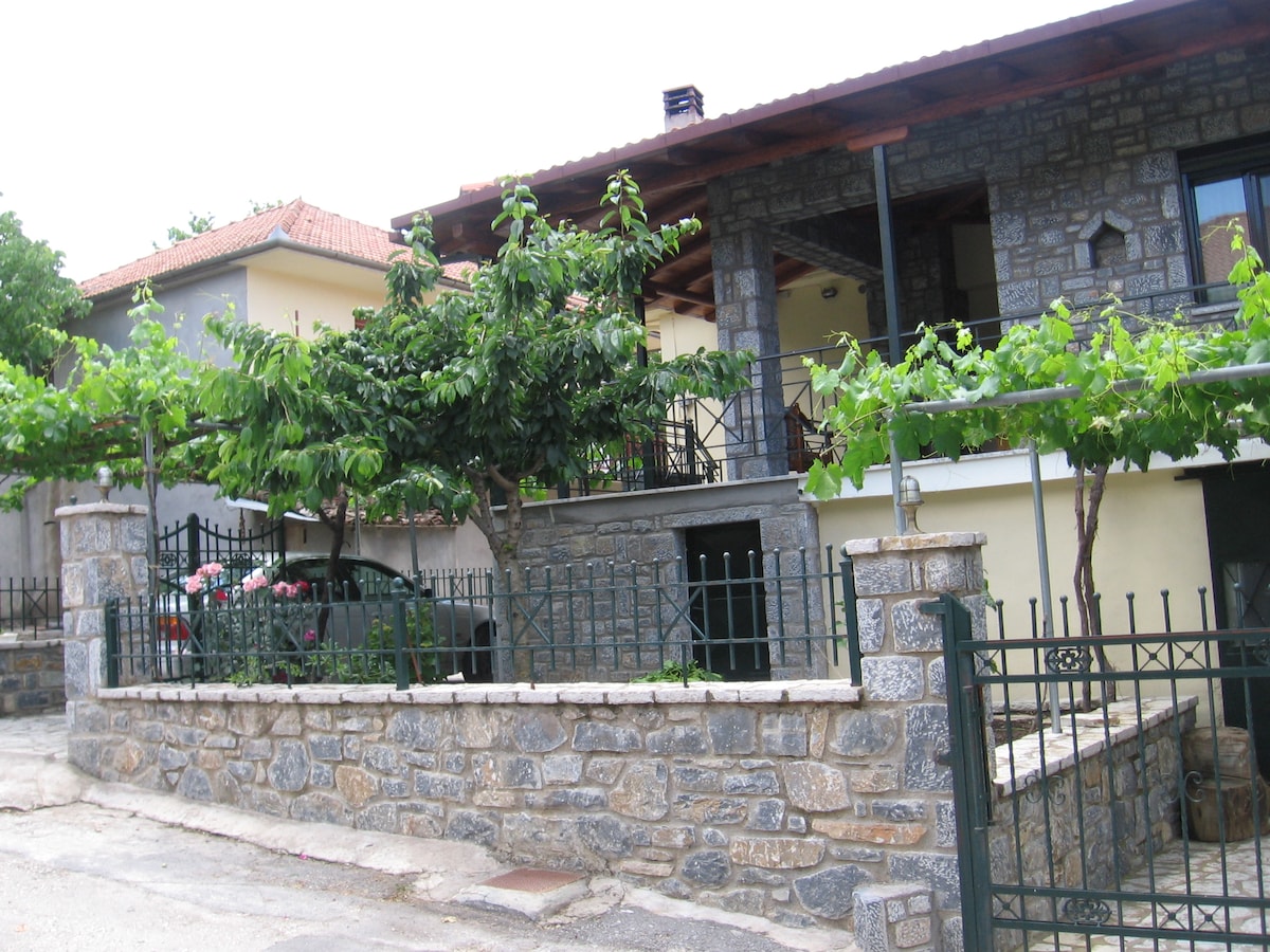 Πετρόχτιστο σαλέ σε ιδιωτικό δενδρόφυτο κτήμα φυσικής ομορφιάς. Άκρως καλαίσθητος εσωτερικός χώρος, φωτεινός, απόλυτα ήσυχος, με σοφίτα, ξενώνα, τζάκι και θέα σε κήπο και βουνό. Φιλοξενεί έως και 8 άτομα (3 υπνοδωμάτια, 3 μπάνια). Stone-built chalet nests in an amazing natural garden. Decorated with a high sense of elegance, sunbathed, quiet, with an attic, a guesthouse, a fireplace and a view towards the private garden and the mountain. It can host up to 8 people (3 bedrooms, 3 bathrooms).