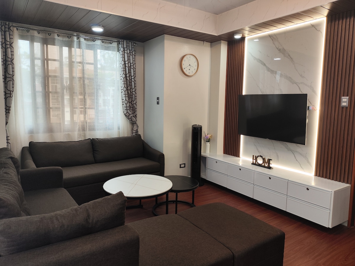 Forget your worries in this spacious and serene space apartment with panoramic city view from our balcony. Located at Middle Rock quarry and close to tourist spots. Burnham Park, Lourdes Grotto and Mirador Heritage and Eco Park is a few minutes away. Very accessible to public transportation. Just take a Jeepney or taxi infront of the house. We have a secured Parking. PLDT Fiber Wifi Connection for those work at home employees. 60"Smart TV, Furnished living room/kitchen/fresh linens/towels.