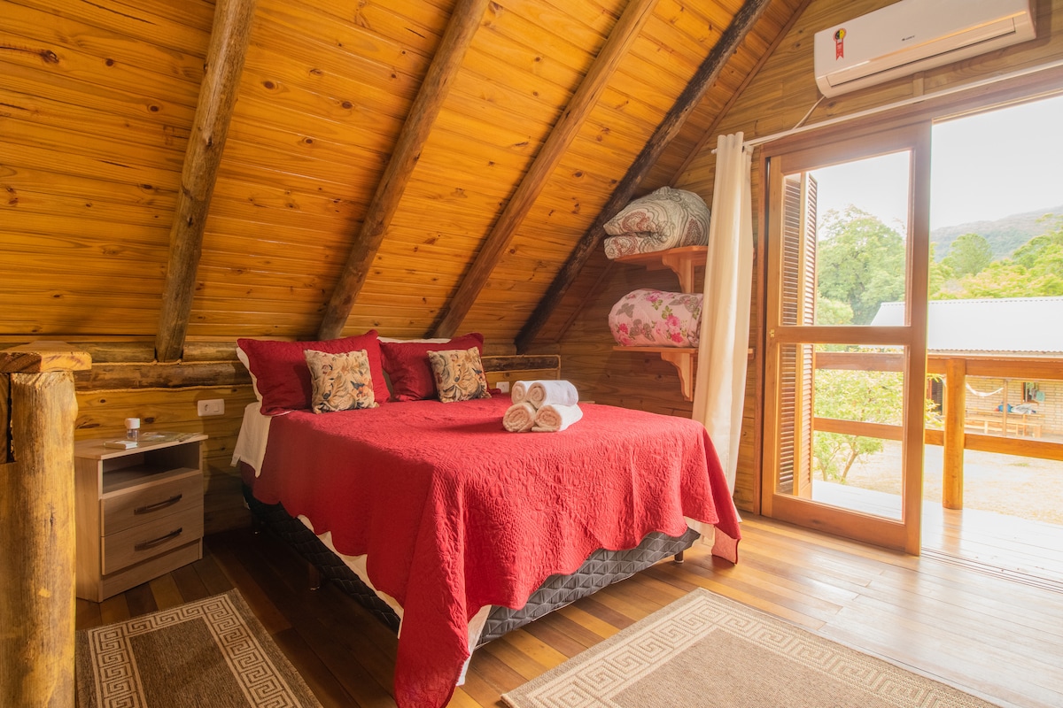 Great location 1 km from the city center. The huts are suspended at 4 meters high, an araucaria in the middle of the deck, tranquility, birds singing in the morning, proximity and practicality. Room with a king size bed and a single room, mini kitchen and bathroom. For those looking to travel and comfort, the huts have air conditioning, parking below the hut, breakfast included in the city center in the coffee chain (5min by car).