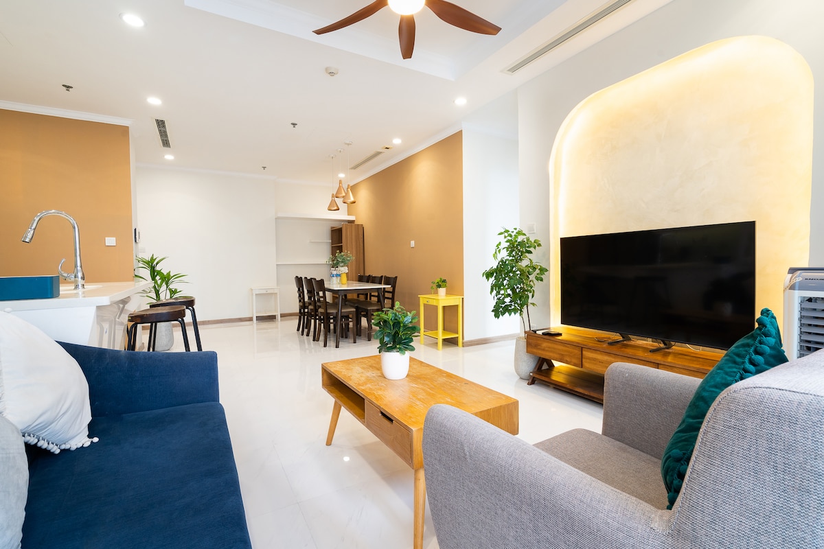 Stylishly-furnished 1-bedroom apartment with a beautiful view of city center (District 1) & smart TVs in living room & bedroom. Fully-equipped with wide range of amenities (see photos) unmatched by other apartments in the city, fast customer service until late. Staying with us is the best choice for Guests who value reliability & convenience. Located in Vinhomes Central Park, a high-end area with restaurants, cafes, a mall & the famous Landmark 81 tower. Just 10-15 minutes to city center.
