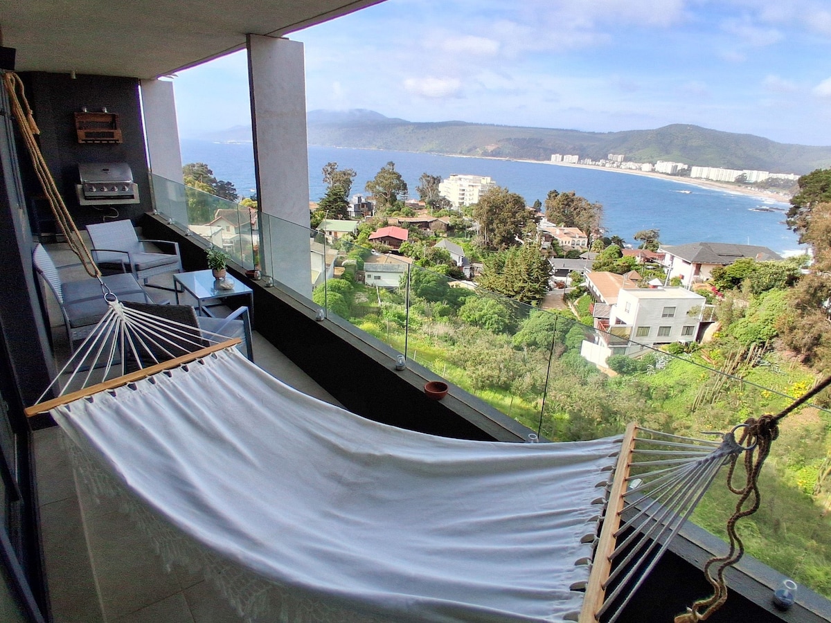 New and central condo apartment 1 block from the beach and plaza, where the best bars, restaurants, cafes and stores in Papudo are located. Ideal for families, couples and friends who want to stay in a comfortable, safe place, with 2 swimming pools, barbecue areas, a relaxation room with various amenities. All spaces have access for people with reduced mobility. Located in a strategic and privileged location steps from the beach, yacht club and fishermen's cove.