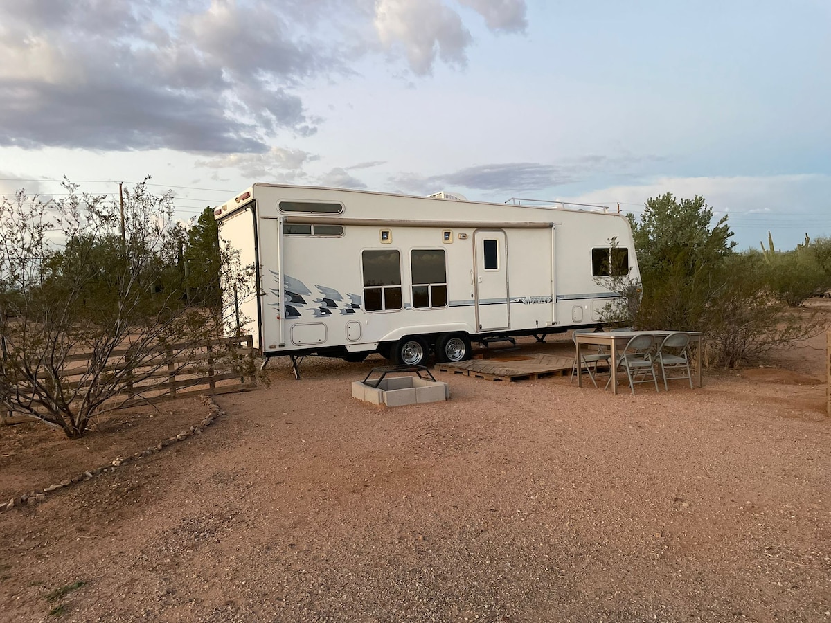 Nestled at the foot of stunning Red Butte, Thunderbird Suite is southwestern decor with antique furniture. Just outside the glass doors, is a desert landscape of Saguaros & other Sonoran natural desert cactus & trees. Thunderbird is an independent, private suite added onto the main house, with a wall separating it. There is laundry available just next to the private bath with shower & tub. If booked, other listings may be available: Quail Crossing Casita or the Bird's Nest Glamper.