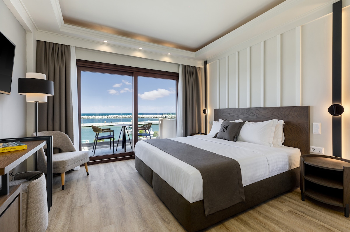 Superior Δίκλινο με Θέα Θάλασσα – Ευέλικτη Τιμή Ι Με Πρωινό Απέραντη θέα στο Αιγαίο και την ιδιωτική μαρίνα του Πλαταμώνα προσφέρουν τα πλήρως ανακαινισμένα Superior Δωμάτια με Θέα Θάλασσα (25μ²). Ο μίνιμαλ και σύγχρονος σχεδιασμός σε συνδυασμό με εξοπλισμό τελευταίας τεχνολογίας και την άνεση των κρεβατιών COCO-MAT υπόσχονται μια αξέχαστη εμπειρία. Τα δωμάτια αυτά βρίσκονται στον 1ο όροφο με ιδιωτικό μπαλκόνι και διαθέτουν υπέρδιπλο κρεβάτι. Φιλοξενούν έως 2 ενήλικες και 1 μικρό παιδί.