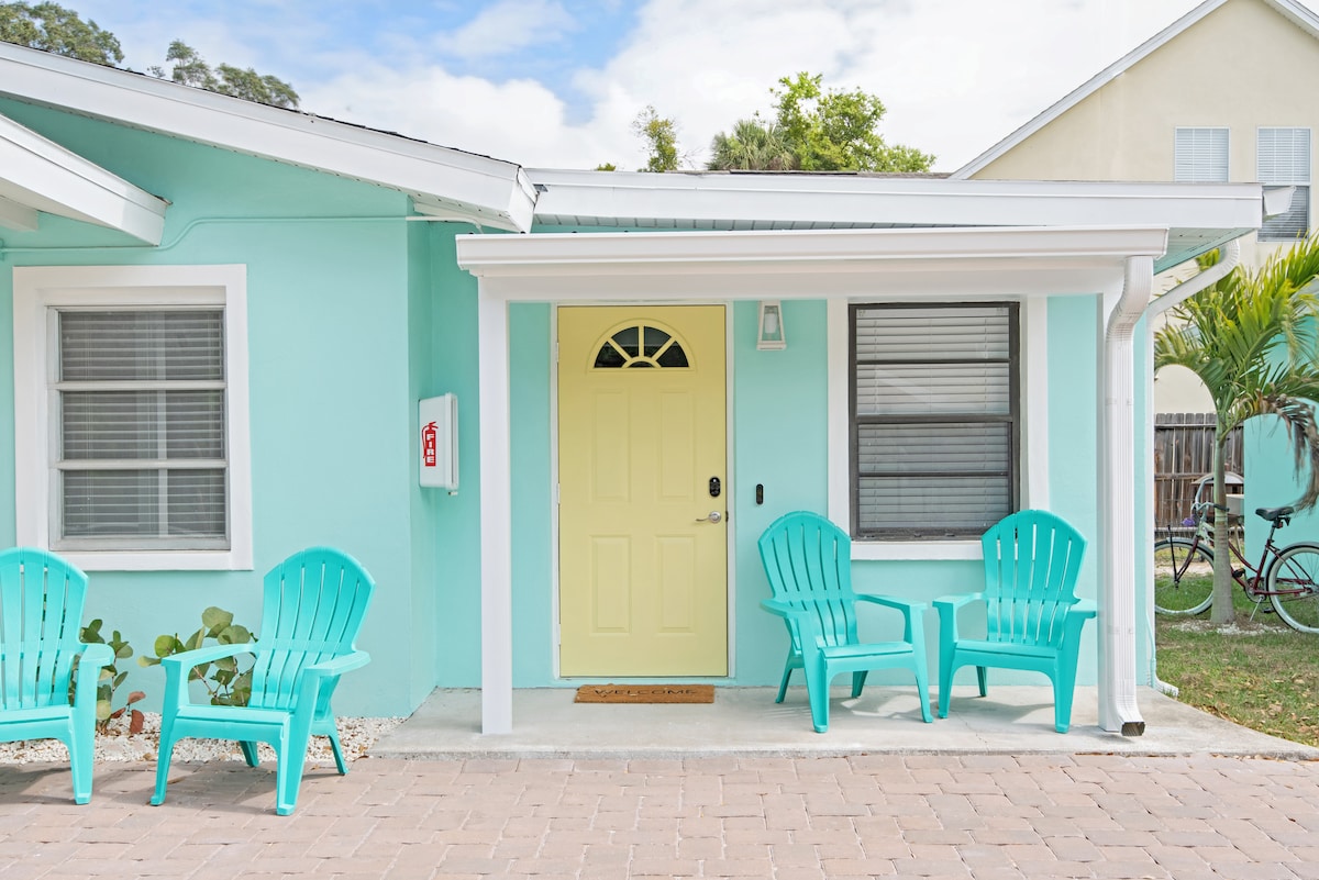 Stay in this charming 1920's cottage, where everything is just a stroll away. Walk to the local restaurants, breweries, and shops on Main St, or take a leisurely walk to the marina for sunsets. With its prime location, it is perfect for exploring the heart of Dunedin on foot. Let’s walk and discover all that this vibrant area has! Your beautifully appointed cottage is a great retreat after beach fun, baseball or biking, and is an easy stroll home after an evening enjoying the local music scene.