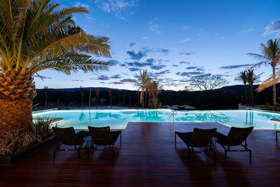 O resort Pyreneus Residence oferece um parque aquático completo com piscinas adulto e infantil, e você vai se surpreender com uma piscina de borda infinita com vista privilegiada para o cerrado goiano. Além de piscina com hidromassagem, sauna, academia com aparelhos modernos, bar, restaurante, dog care, dog play, conveniência, brinquedoteca, quadras de esportes, campo de futebol, xadrez e dama gigante, parque das águas, sala de jogos, playground, recreação, SPA (serviço terceirizado).