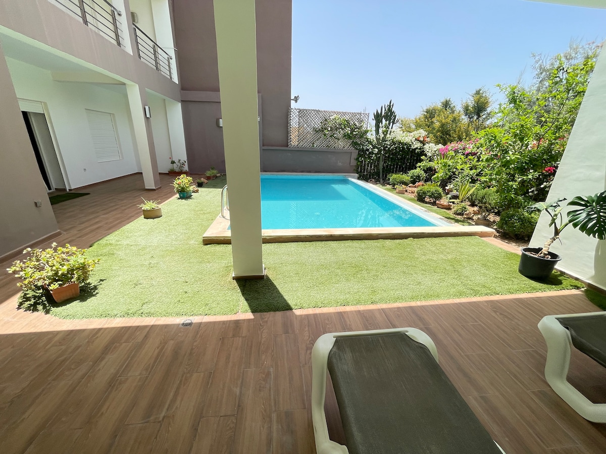 Cozy waterfront house in Taghazout, a few km from Agadir. The house is located in the Paradis Plage residence, which is secured 24/7 with private access to the beach and 2 swimming pools. 5 min walk to the Paradis Plage Hotel with Surf, Yoga & SPA activities. House contains 2 suites with bathrooms as well as a shower room near the living room Terrace, and garden directly overlooking the beach Equipped American kitchen, air conditioning, TV and internet are at your disposal.