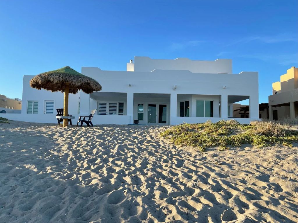 Beautiful beachfront villa on the Sea of Cortez with fast internet service! Centrally located on Playa Mirador, this 3 bedroom 3 bath home is within a short walking distance of Manny's Beach Club, Pitaya Bar and Pink Cadillac. Spend the day on the beach, then unwind and watch the sunset from the large patio with lounge chairs, firepit and BBQ grill. The home is perfect for entertaining with a shuffleboard and foosball tables, two 50" smart TV's and a fully stocked kitchen.