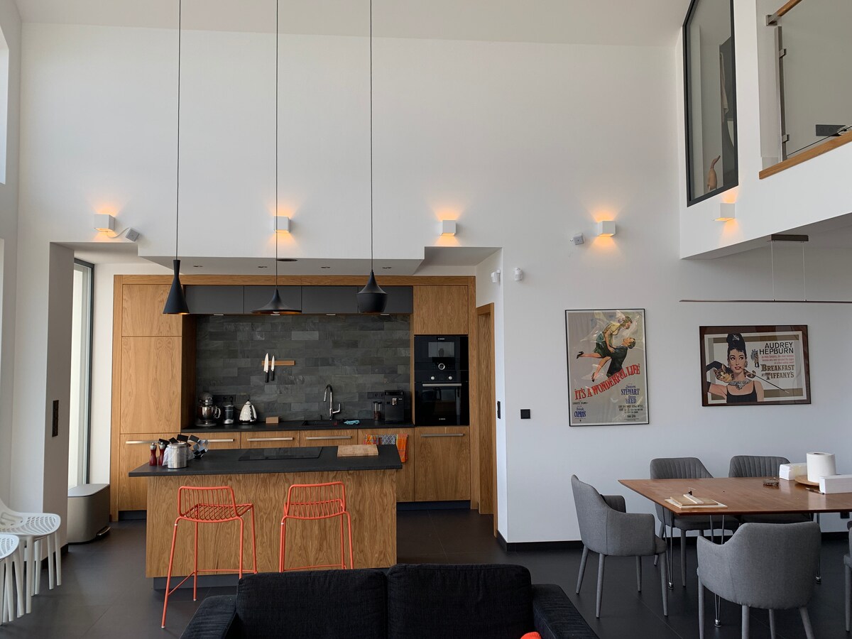 The hideout by the lake is a cottage with an area of about 100m2, located on a closed, wooded plot for exclusive use. Peace, quiet, a climatic wooden house, sauna, hot tub, billiards, gazebo with a place for a barbecue and a bonfire, a tree house and a pier on Lake Józefowo are at the disposal of our guests. The cottage has 3 bedrooms, 2 bathrooms, a living room with a fireplace (with two sofa beds) and a fully equipped kitchen. The beds are continental All bedrooms and the living room are air-conditioned