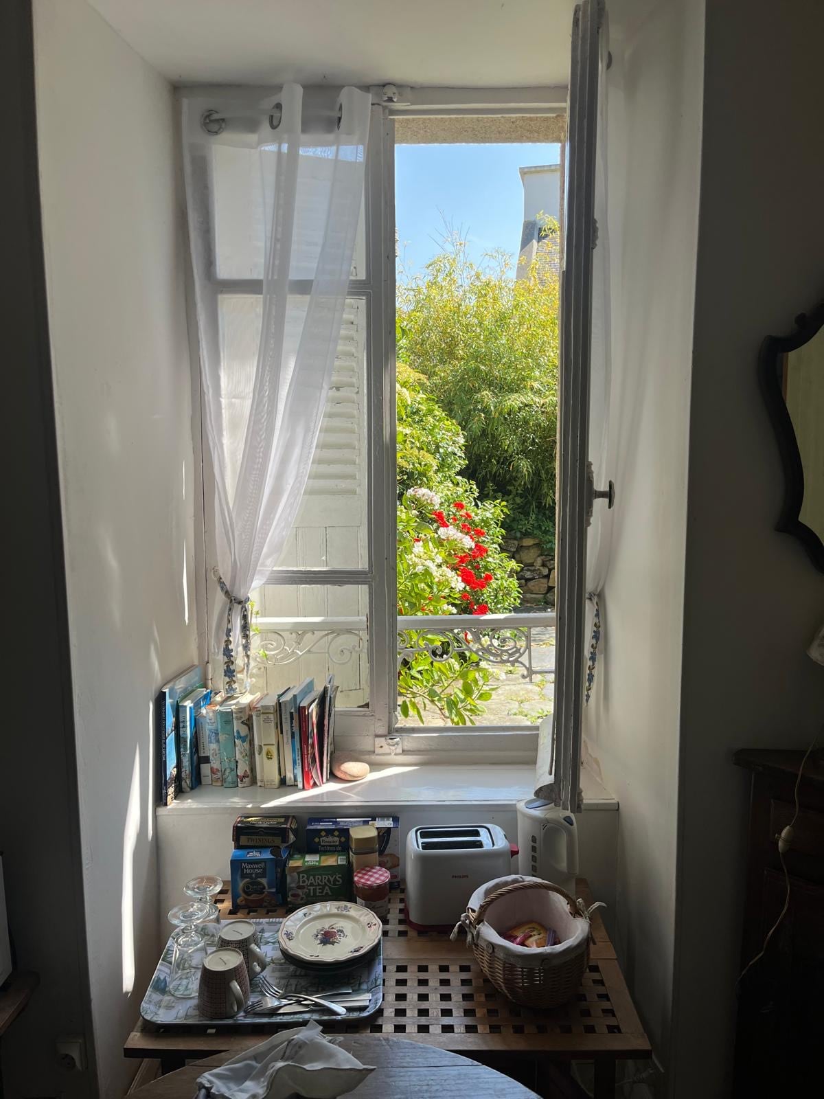 This guest room is ideally located for exploring the north coast of Brittany. 2 km from the sea and shops, on a quiet street. Located on the second floor of a house reserved for 2 guest rooms, it includes a double bed, a kettle with courtesy tray, Wi-Fi access. Bathroom, toilet, reading area and balcony shared between the two bedrooms. Breakfast is served in the dining room or on the terrace depending on the weather. Free parking on site.