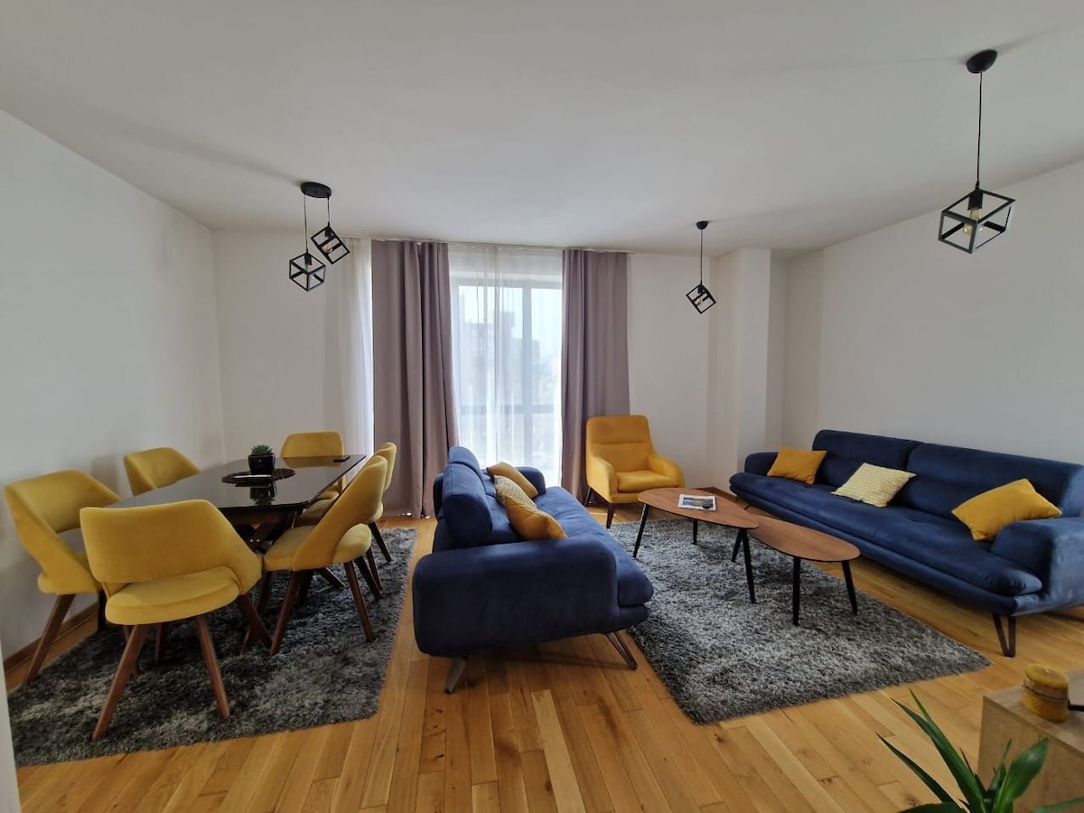 This stylish place to stay is perfect for group trips. Apartment is in ideal location in the most green and beautiful area. It has 80m2, two bedrooms, bathroom, toilet, two terrasses and free parking spot. In the building you can find pharmacy working 24/7 lots of supermarkets, caffes, banks, more than two ATM. It's 700m from the center of the town, less than 10 minutwalking distance from the river. All important spots in the town are very close. There are two bus stations and taxi stations.