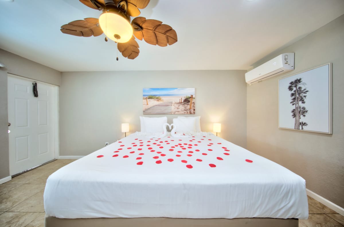 Amazing waterfront modern studio on the Intracoastal located in the quaint boutique Aloha Condo rental/resort. This first-floor unit has sensational water and sunset views! Tasteful renovations include new furniture and decor. Our vacation home comes fully furnished and has luxurious amenities that include a heated pool, 200ft of tropical landscaping, BBQs, outdoor eating areas, lounge chairs, tables, umbrellas, private parking and so much more.