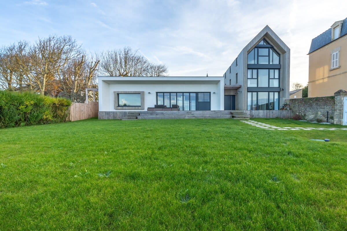 New contemporary 160 m2 house completed in March 2021. Exceptional location in the heart of the charming seaside resort of Barneville-Carteret on the cliff. Breathtaking sea view facing the island of Jersey that you can enjoy from the large 35 m2 south-facing terrace. Beautiful sandy beach 2 minutes walk below the house ("Potinière" beach) From June 28 to August 30, 2025: 7 nights minimum + arrival/departure exclusively on Saturday
