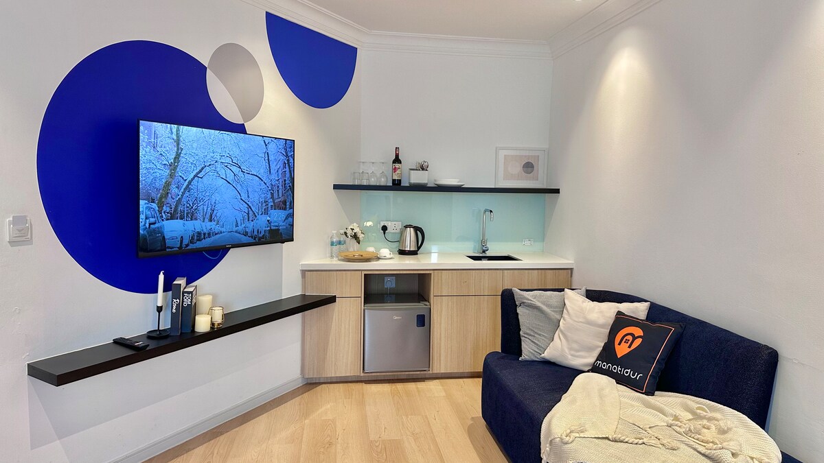 This unit is thoughtfully designed with charming vintage touches — perfect for couples looking for a cozy, romantic getaway. From antique-style furnishings to soft, ambient lighting, every detail is crafted to give you a warm and nostalgic stay. Here are more reasons to choose our Vintage-Inspired Couple’s Studio: 4K Smart TV with Complimentary high-speed WiFi. Vintage decor with modern comforts — the best of both worlds. 24-hour reception for convenient and flexible check-in.