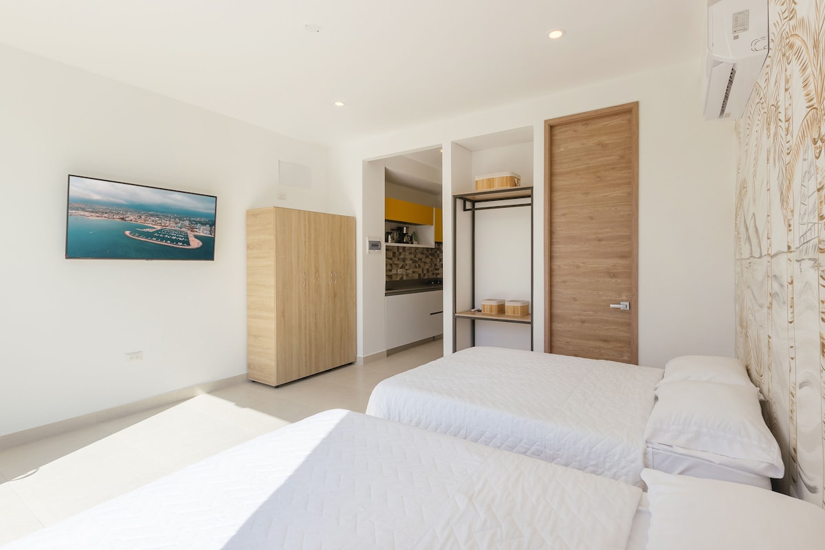 ⭐ Despierta con la brisa del mar en esta elegante suite, ideal para una escapada cómoda y relajante. Su diseño moderno y funcional crea un espacio perfecto para descansar y disfrutar. 🌊 Ubicada a pasos del mar, la suite tiene dos camas dobles, una cocina equipada para que prepares tus platos favoritos, y un baño con todas las comodidades. 📅 Reserva ahora y haz de esta suite tu refugio frente al mar en el Caribe. ¡Te esperamos!