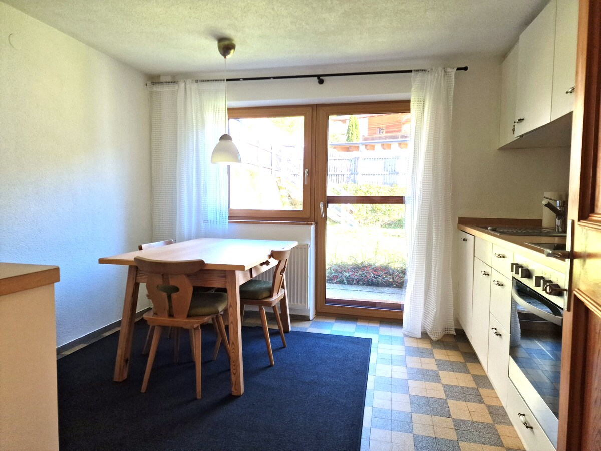 Ankommen - sich wohlfühlen! Herzlich Willkommen im Apart Haus Kofler! Die 100m² Wohnung für 4 bis 6 Personen, ist ausgestattet mit einer Wohnküche, Wohnzimmer mit Kabel HDTV und Kachelofen, 3 Doppelbettschlafzimmern, Du/Wc, Vorraum und Balkon südseitig. Unsere große Terasse lädt zum Frühstücken, Grillen und Sonnenbaden ein. Schiraum mit Schischuhtrockner!