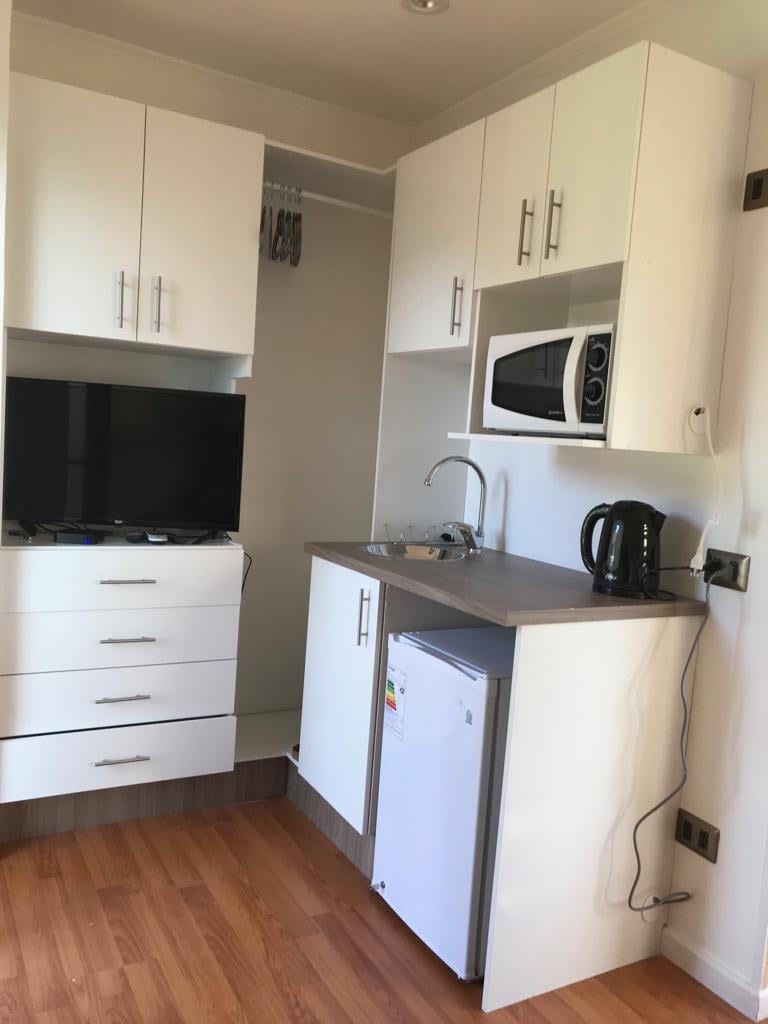 Enjoy the best location in Pucón in this modern 30m² studio apartment in the exclusive Altavista Condominium. A safe and quiet haven within the city, ideal for those looking for comfort, security, and a flawless internet connection for working remotely. The apartment has efficient electric heating that keeps the atmosphere warm and cozy to enjoy after an adventure or simply to get some rest and relaxation. Includes free private parking