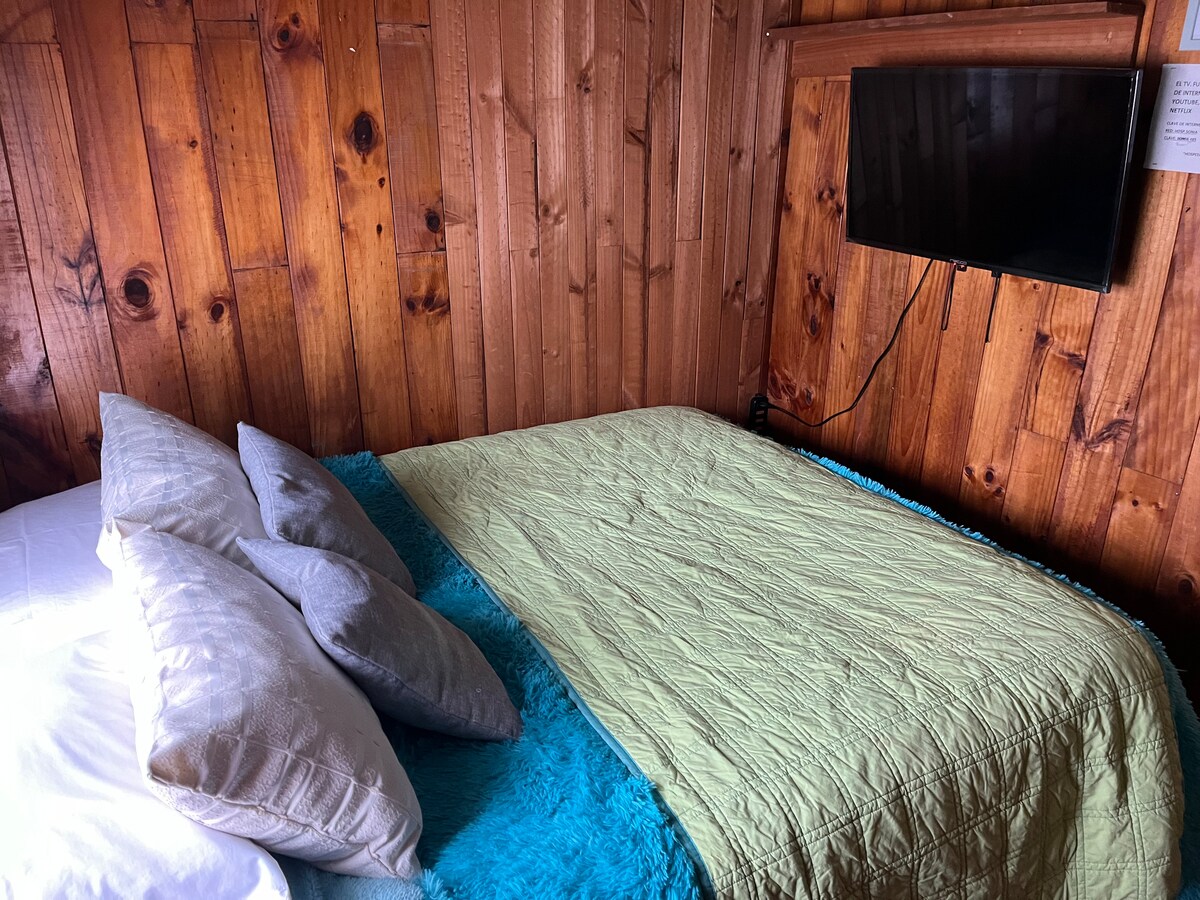 Family cabin, in a cozy environment, with children's games and a swimming pool