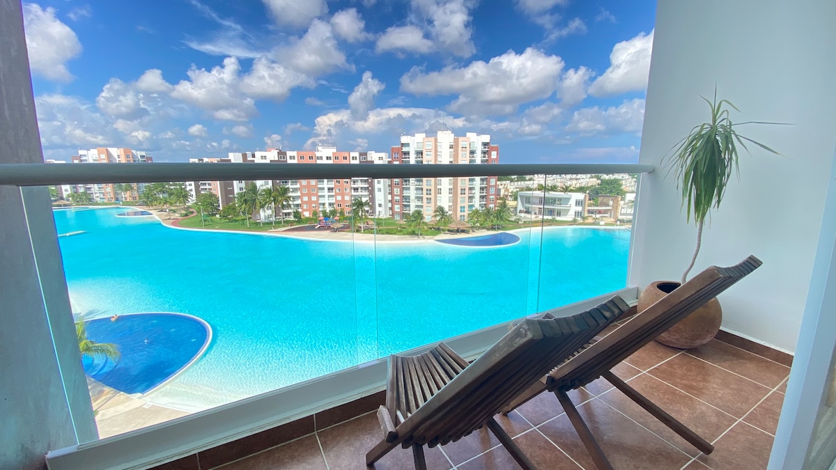 Apartamento hermoso, limpio y exclusivo para cada grupo de hospedaje. Balcón, terraza, 3 recámaras. 2 baños. Con vista espectacular a la laguna (artificial), 7 albercas, jardines. Seguridad 24/7. Estacionamiento, Wi Fi, Aire Acondicionado, Ventiladores, 2 Smart T.V. , Netflix, Lavadora, secadora, plancha, secador de pelo, Caja de seguridad, etc. Supermercado, Tiendas de conveniencia, Cafeterías, gasolinera, restaurantes y bares, servicio de Emergencias, ATM, a 3 cuadras del Complejo.